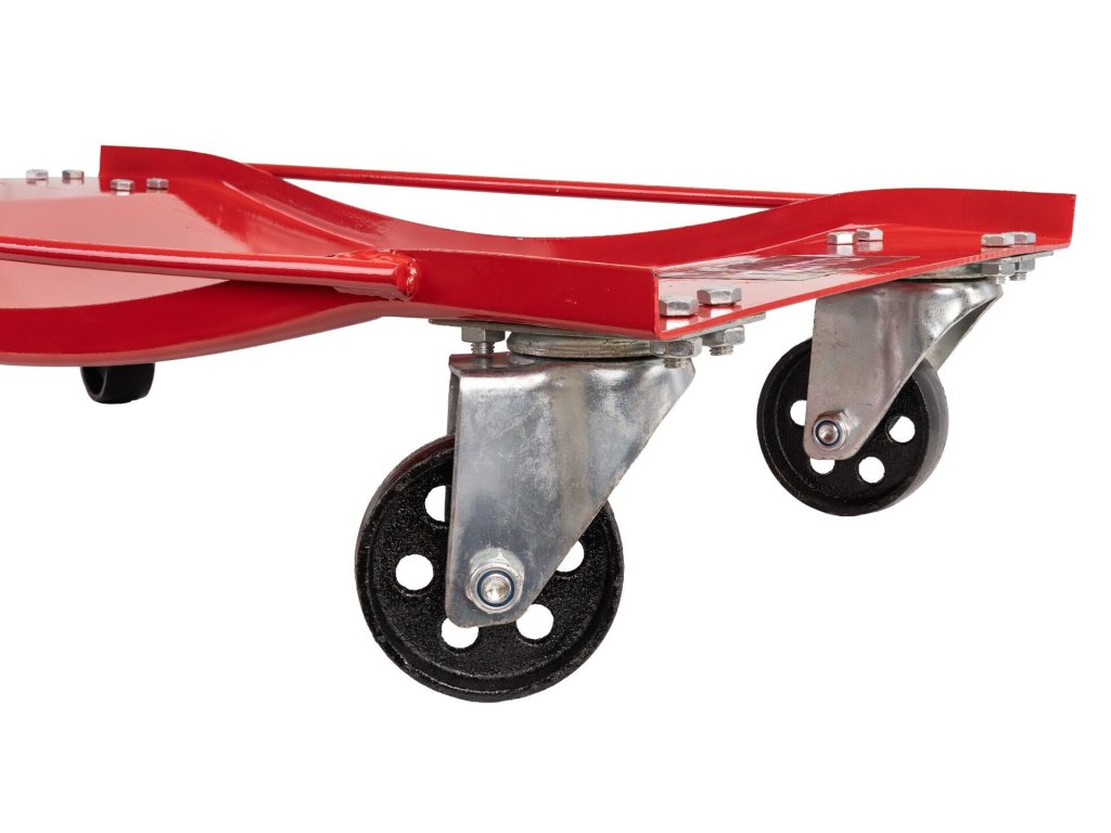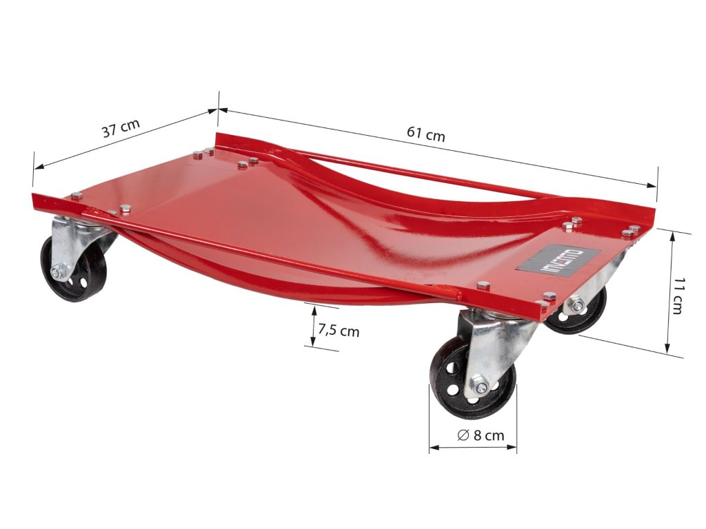 Vozík umožňuje přesné manévrování s vozidlem nebo strojem i v případě zablokovaných kol, a to bez nutnosti jejich startování. Je neocenitelným pomocníkem při opravách, inspekcích, parkování nebo uskladnění vozidel.