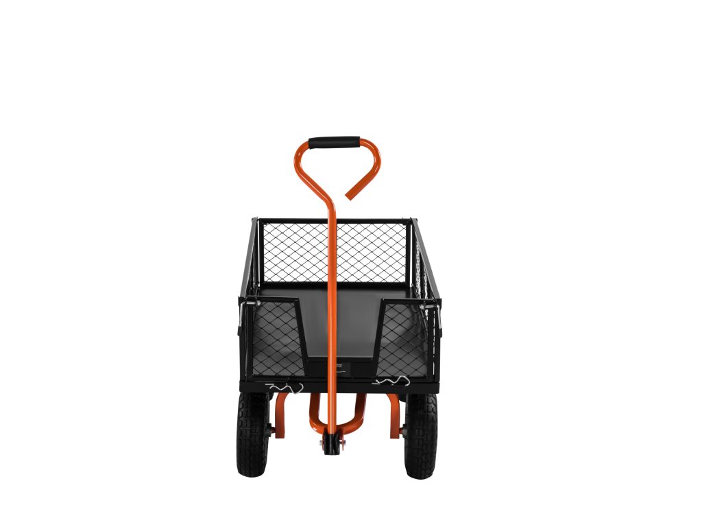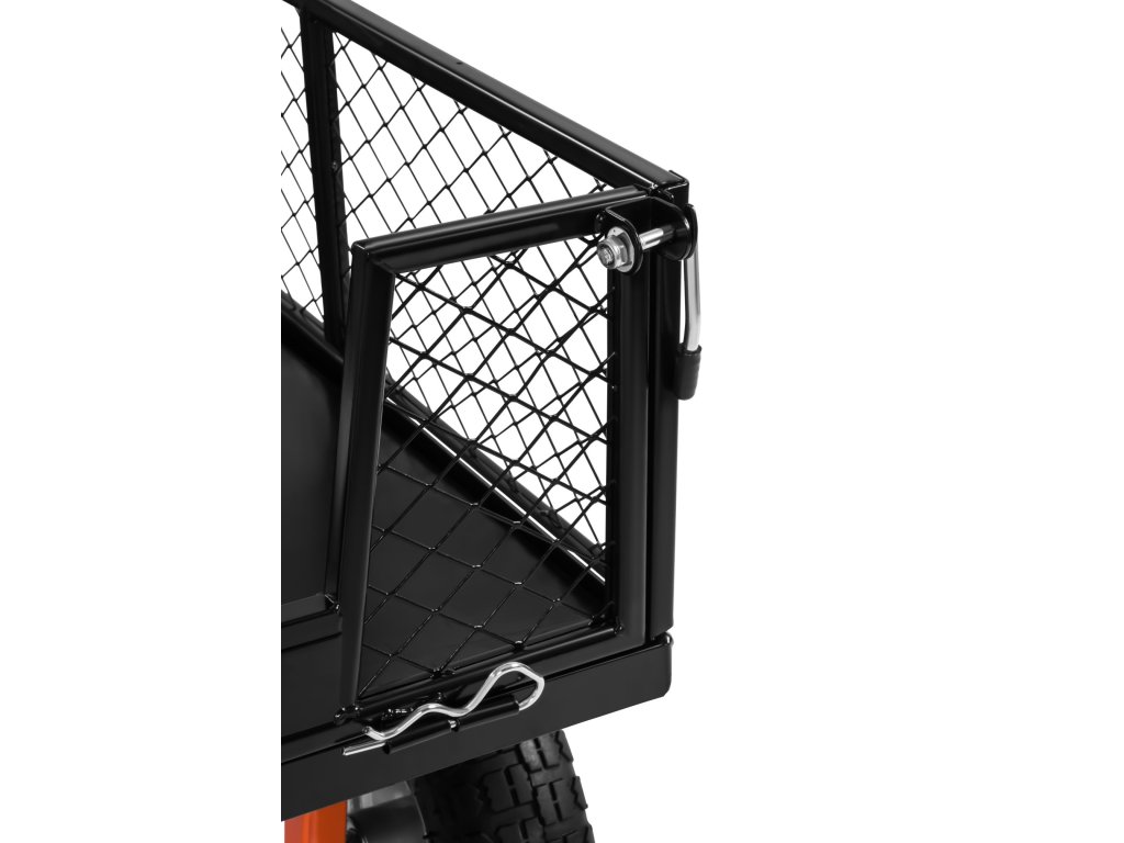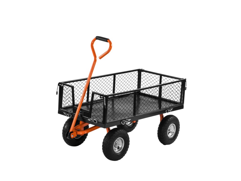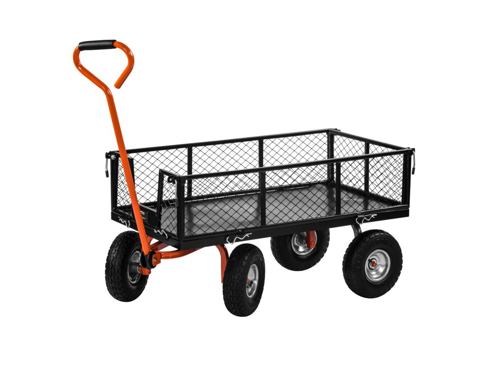 Pevná ocelová konstrukce v kombinaci s odolnou plastovou korbou zajišťuje dlouhou životnost a spolehlivost při každodenním používání. Čtyři nafukovací kola poskytují stabilitu a pohodlnou manipulaci i v nerovném terénu. Praktická funkce vyklápění (kiprování) umožňuje rychlý a pohodlný výsyp převáženého materiálu.