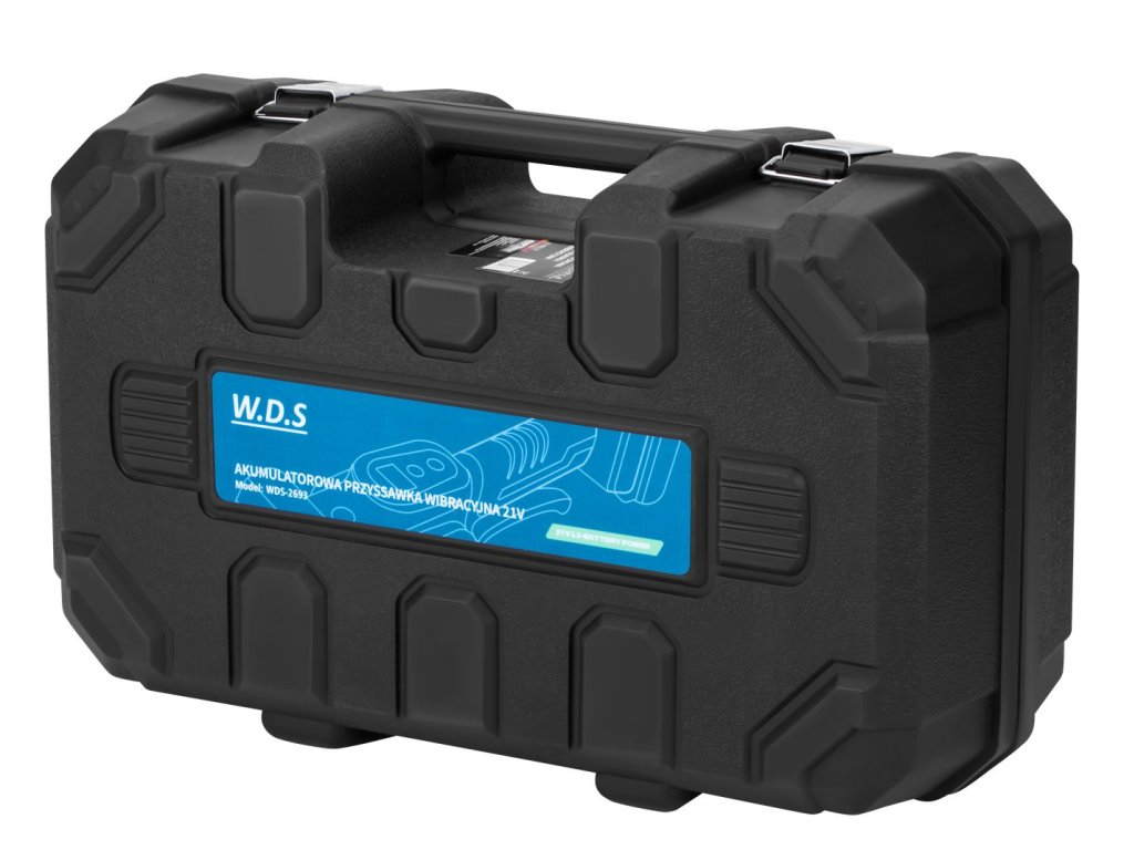Přísavka WDS2693 je vybavena výkonným akumulátorem 21V s kapacitou 2Ah, který zajišťuje dlouhou dobu provozu bez nutnosti připojení k síti. V balení jsou dva akumulátory a praktický kufřík, který usnadňuje přenášení a skladování zařízení.