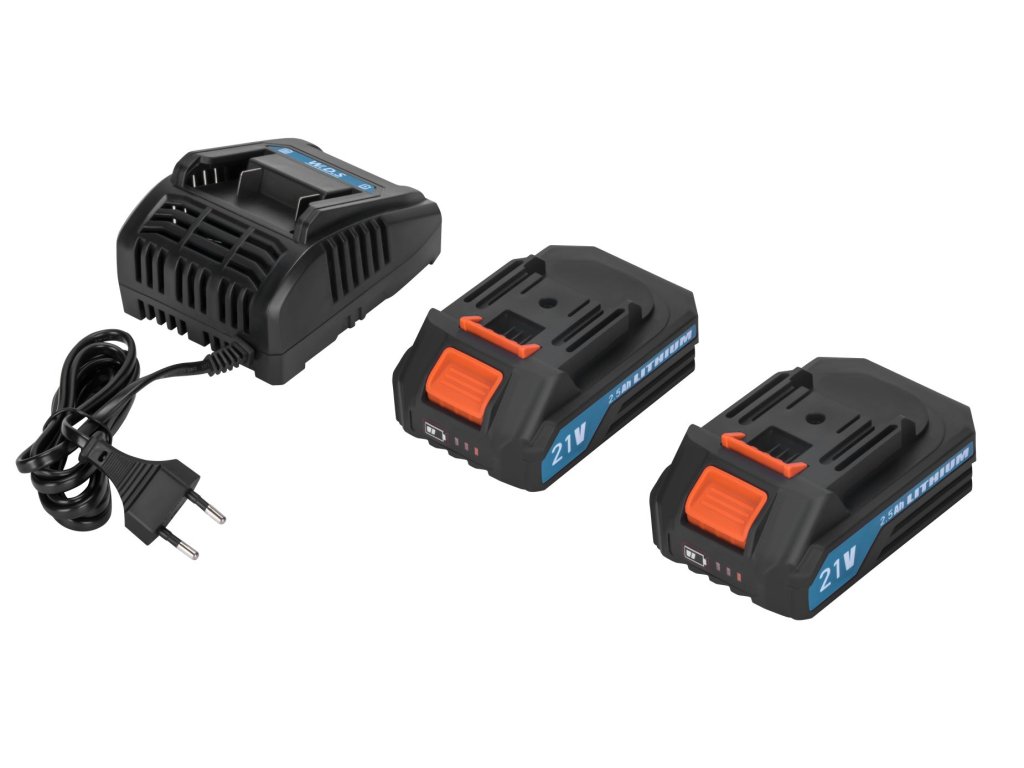 Model WDS2694 je vybaven výkonným akumulátorem 21V s kapacitou 2,5Ah, který umožňuje delší provoz bez nutnosti připojení k síti. V balení jsou dva akumulátory a nabíječka 230V / 50Hz, které zajišťují pohodlné používání a rychlé dobíjení.