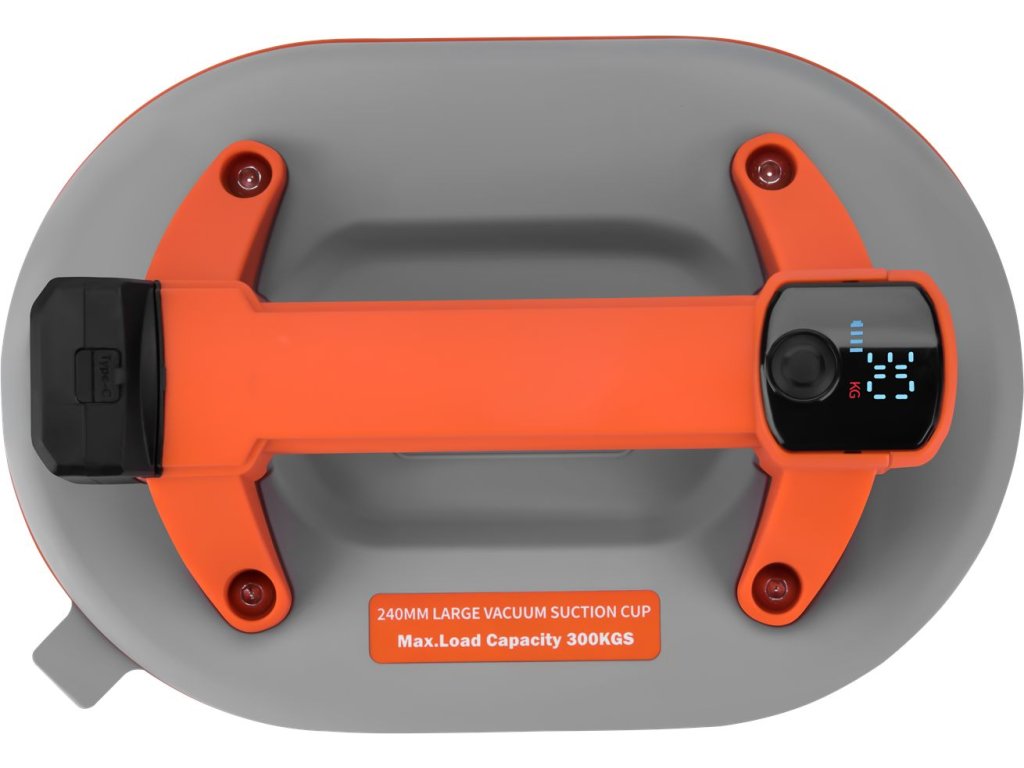 Akumulátorová přísavka KD11965 je profesionální nástroj o průměru 240 mm a maximální nosnosti až 300 kg. Je určena pro bezpečné a pohodlné přenášení prvků s hladkým povrchem, jako je sklo, kamenné desky nebo kovové plechy.