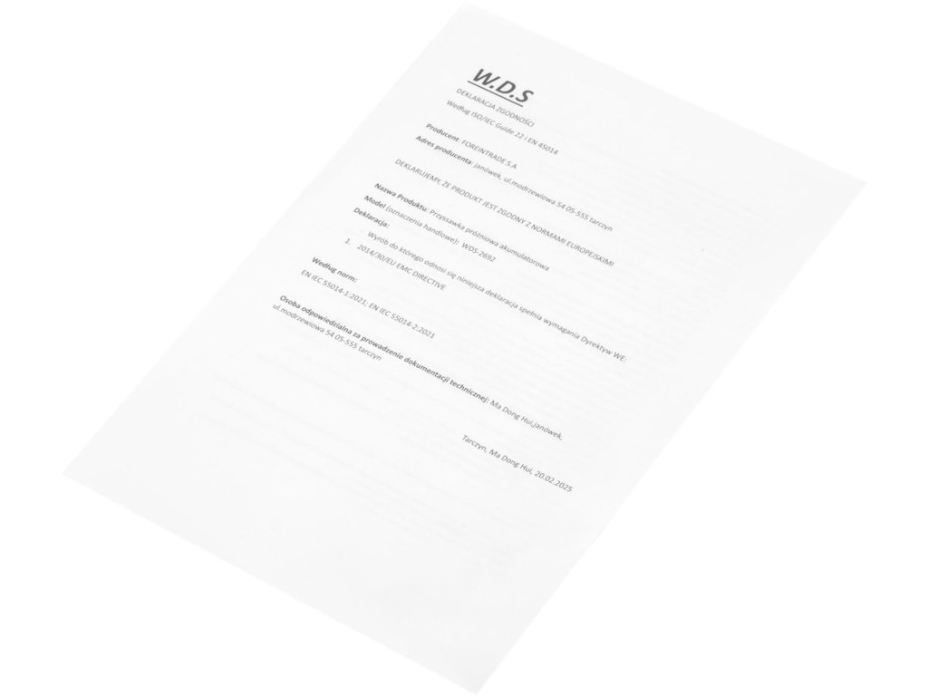 Zařízení je vybaveno akumulátorem s kapacitou 3000 mAh a moderním nabíjením přes port USB-C, což zajišťuje dlouhou dobu provozu na jedno nabití a rychlé, komfortní dobíjení. Robustní a ergonomická konstrukce poskytuje uživateli pohodlí i bezpečnost při manipulaci s těžkými materiály.