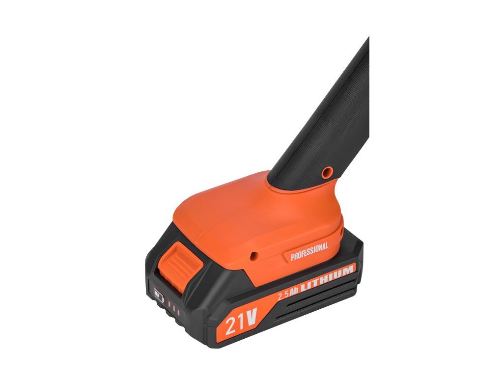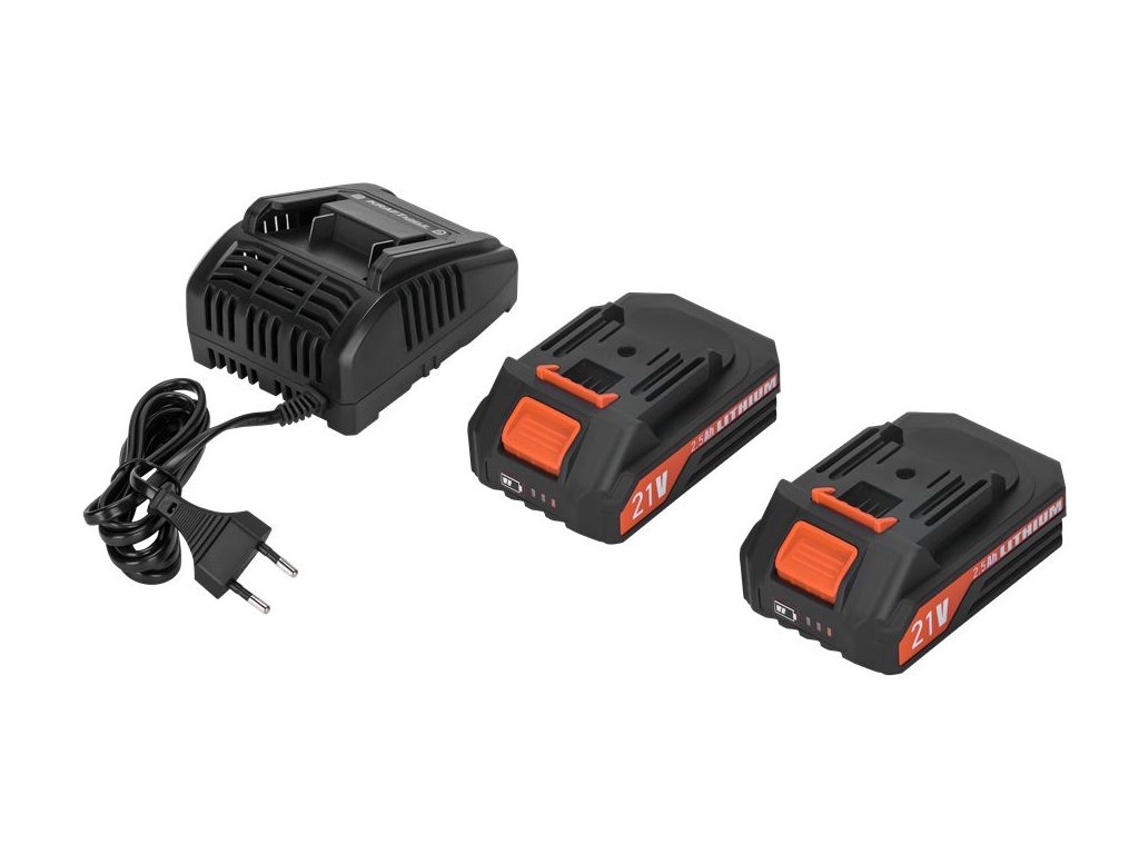 Model KD11967 je vybaven výkonným akumulátorem 21V s kapacitou 2,5Ah, který poskytuje dlouhou dobu provozu bez nutnosti připojení k síti. V balení se nachází dva akumulátory, nabíječka 230V / 50Hz a praktický kufřík, který usnadňuje přenášení a skladování zařízení.
