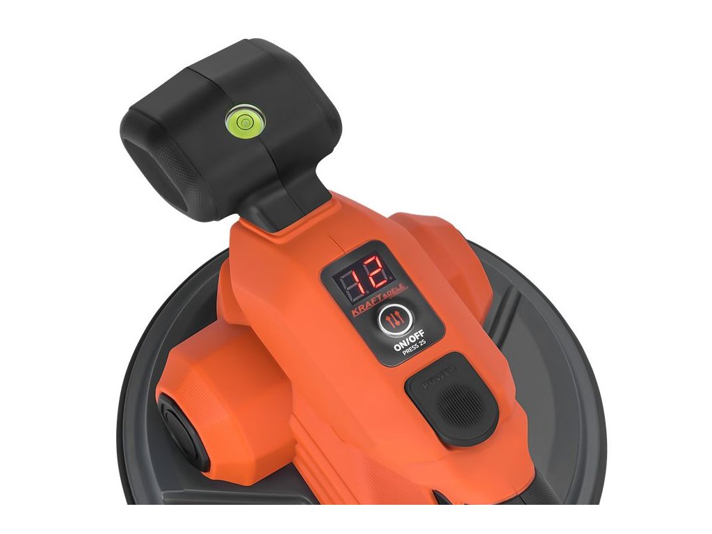 Akumulátorová vibrační přísavka KD11967 o průměru 190 mm je praktické a mobilní zařízení určené pro přesné vyhlazování a opracování povrchů. Díky silné sací síle až 80 kg zajišťuje pevné a stabilní uchycení na různých typech materiálů.