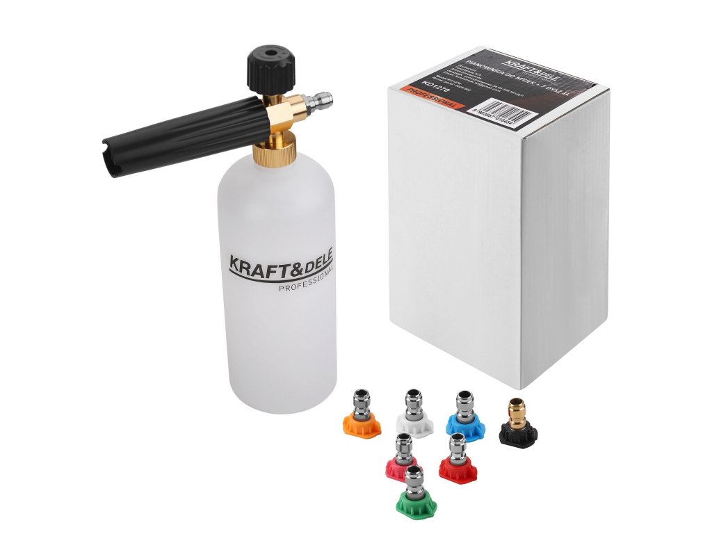 Čisticí nástavec na pěnu (pěnovač) k tlakovým myčkám 1l + 7 trysek, Kraft&Dele KD1270