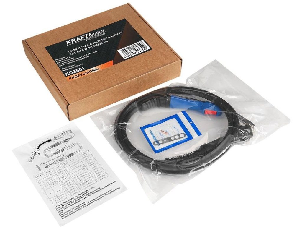 Svařovací hořák MIG/MAG KD3551 s euro konektorem je profesionální nástroj určený pro svařování metodou MIG/MAG. Díky univerzálnímu euro konektoru je kompatibilní s většinou svářeček dostupných na trhu. Kabel o délce 3 metry poskytuje dostatek volnosti při práci, což zvyšuje přesnost a komfort používání.