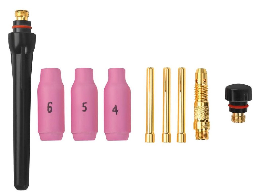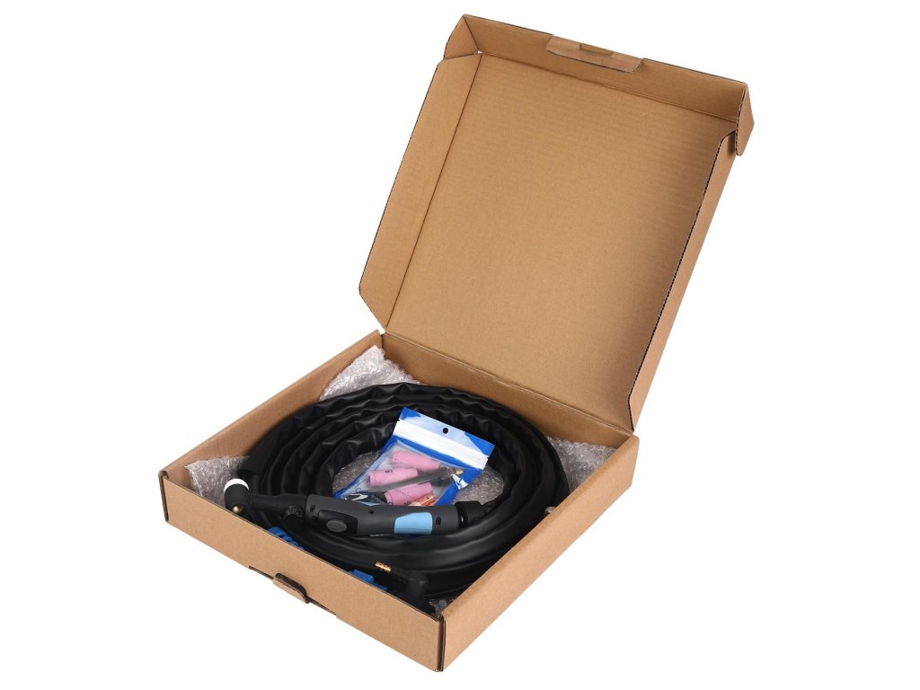 Svařovací hořák TIG LIFT KD3550 je kvalitní svařovací kabel o délce 4 metry určený pro přesné svařování metodou TIG s dotykovým zapalováním (LIFT). Je kompatibilní s většinou svařovacích strojů TIG DC a vhodný pro práci s nerezovou i uhlíkovou ocelí a hliníkem. Hořák se vyznačuje pevnou konstrukcí, ergonomickým tvarem a dodává se s kompletní sadou příslušenství, díky kterému je připraven ihned k použití.