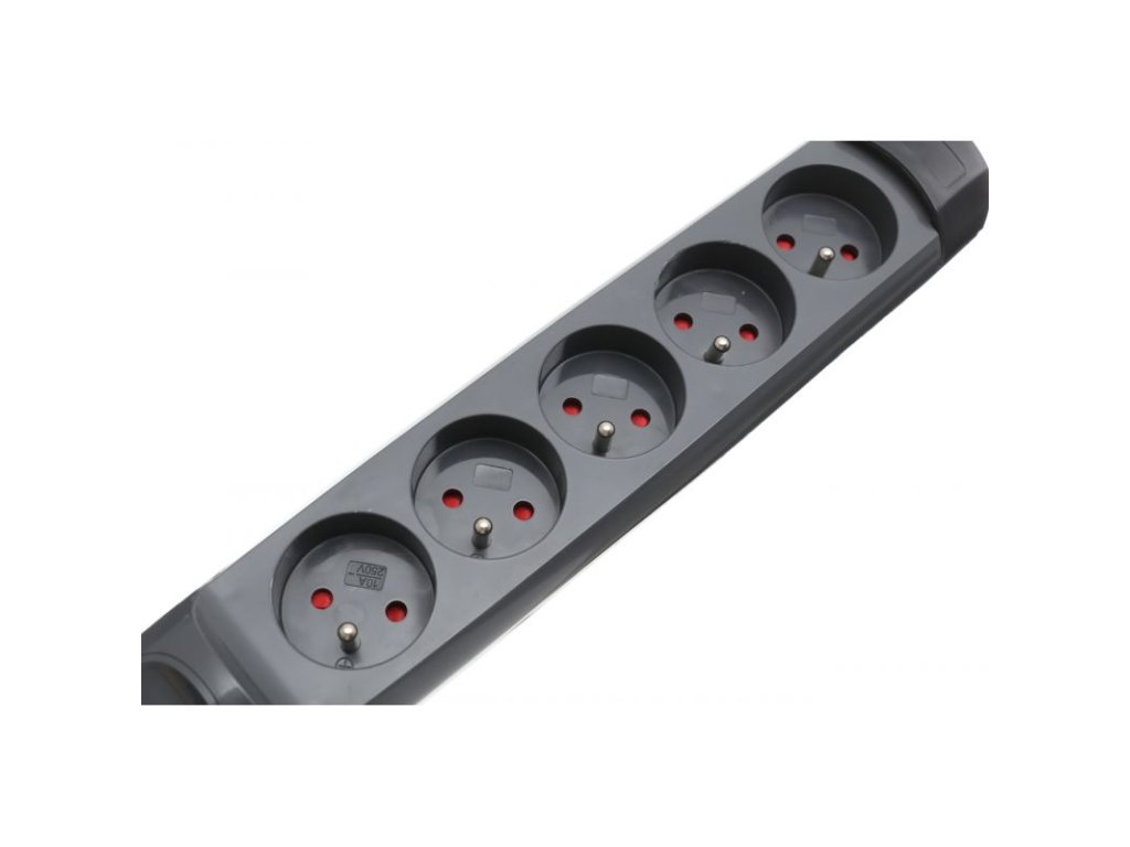 Prodlužovačka má 5 zásuvek, s centrálním vypínačem, jakož i s přepěťovou ochranou.