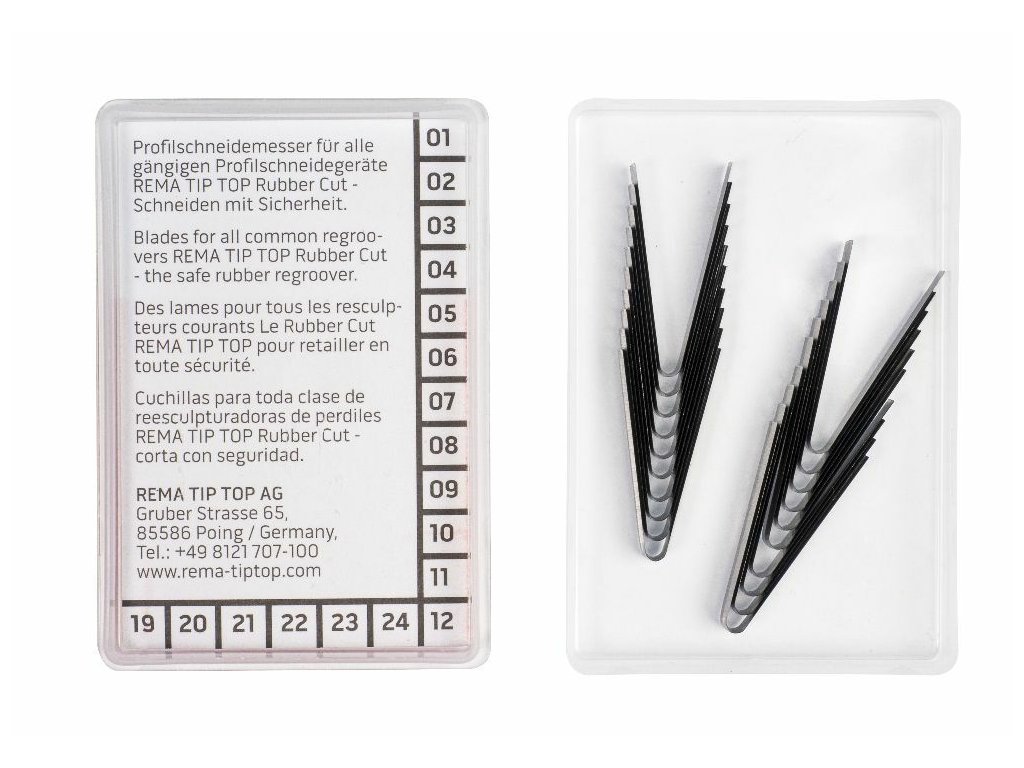 Vysoce kvalitní nožíky R Fix s kulatě ohýbanou čepelí jsou určeny pro prořezávání a prohlubování vzorku běhounu u nákladních pneumatik. Jsou kompatibilní s německými prořezávačkami / vyřezávačkami pneumatik Rubber Cut i Prema Cutter a zajišťují přesný a efektivní řez.