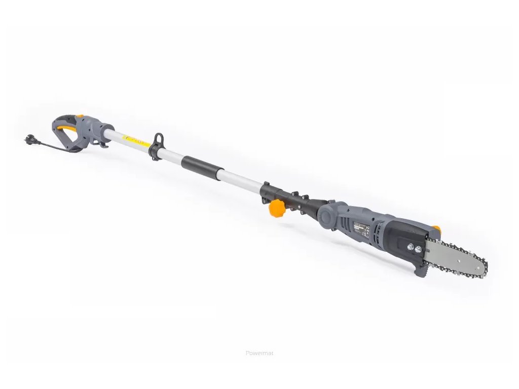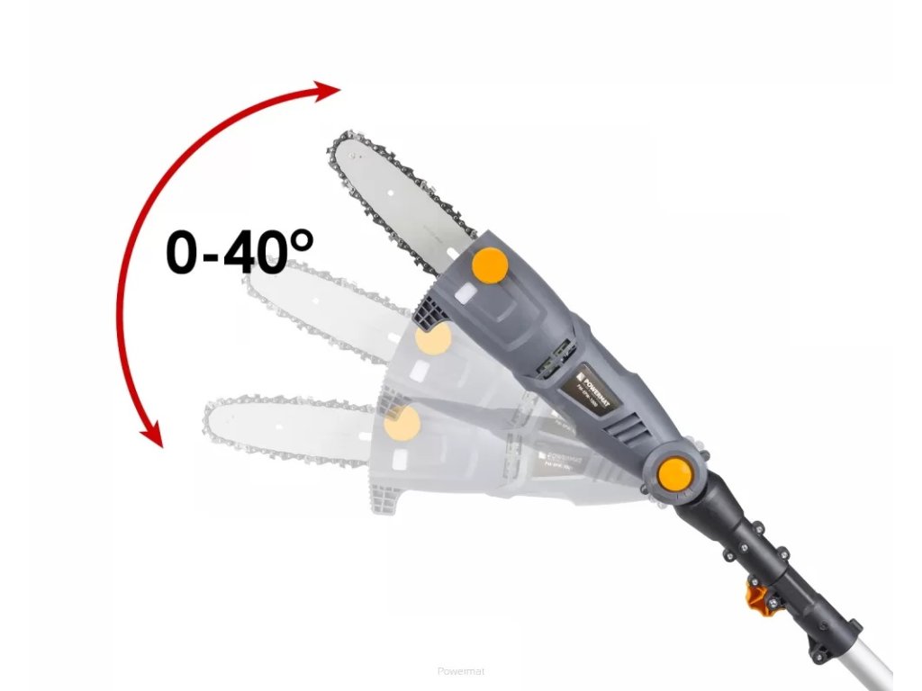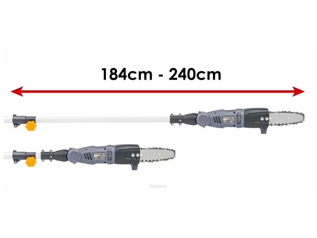 Elektrická vyvětvovací pila POWERMAT PM-EPW-1000 s třístupňovým nastavením sklonu a s kvalitní lištou a řetězem. Pila umožňuje rychlé a snadné nastavení délky v rozsahu od 184 cm do 240 cm a možnost nastavení úhlu sklonu řezné hlavy, což velmi usnadňuje prořezávání stromů. Výkon 1000 W zajistí prořezávání i silných větví.