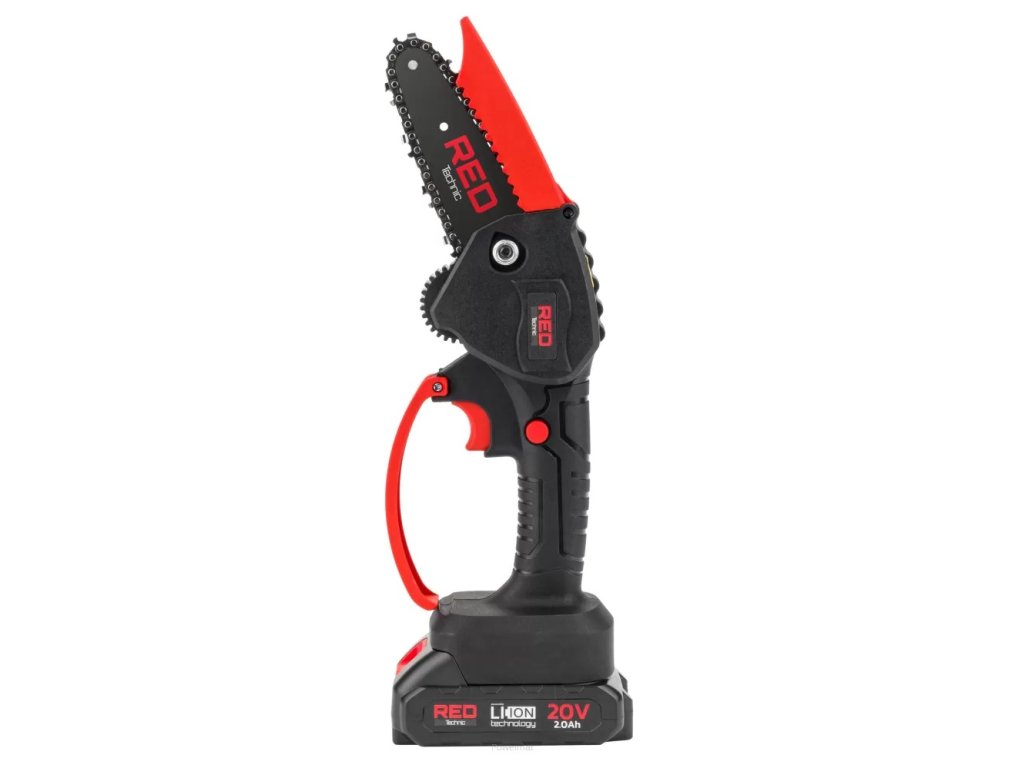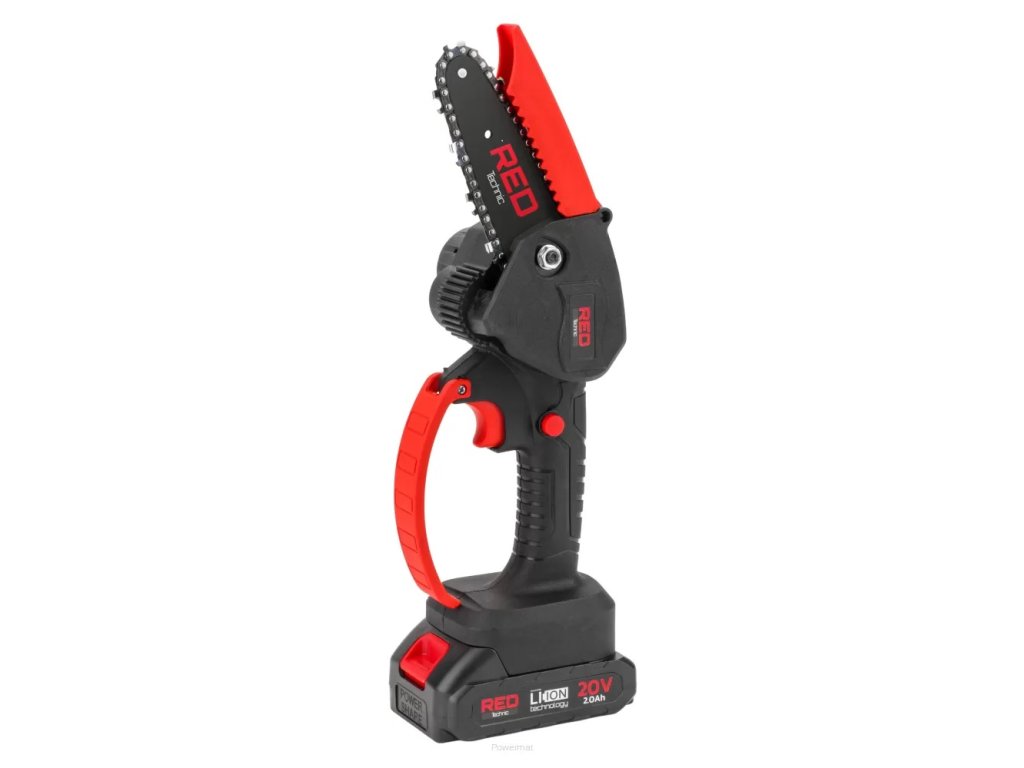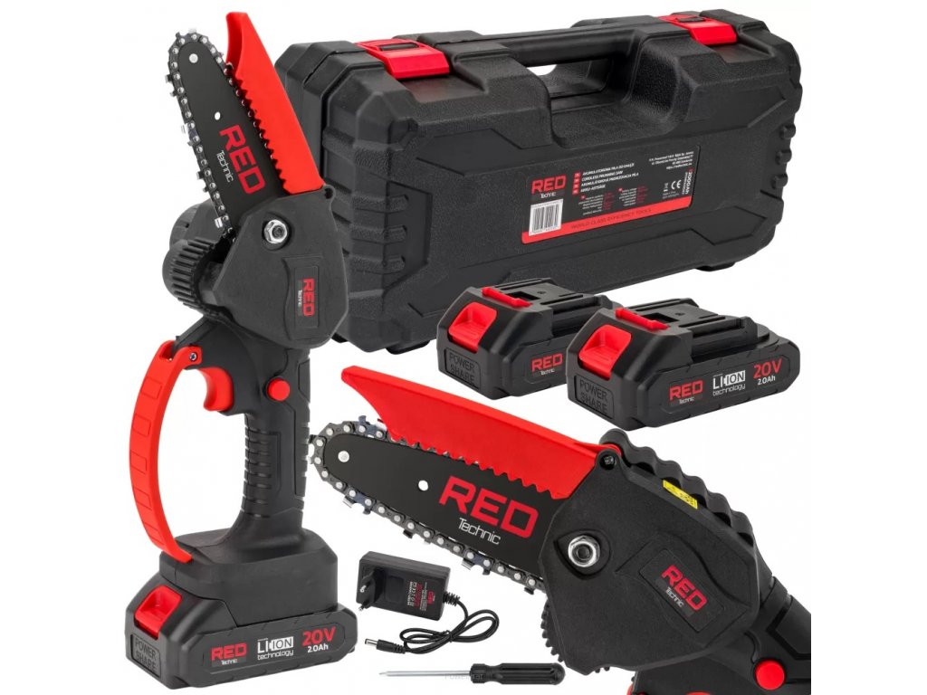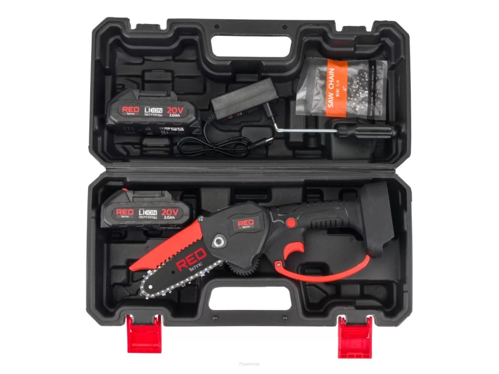 Ruční AKU řetězová pila 4″, 20V, 2 baterie, RED Technic RTMPA0022