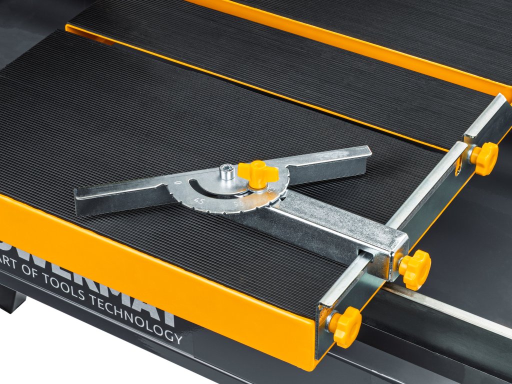 Přesná regulace umožňuje šikmé řezy pod úhlem 45° pro širší využití na stavbě. - Rolovací vozík s měřítkem