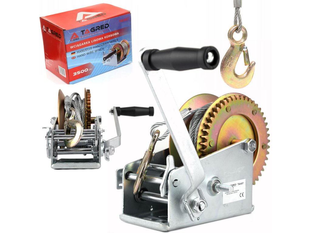 Ruční lanový naviják TAGRED TA407, 1588 kg (3500 lbs), dvourychlostní, 10 m