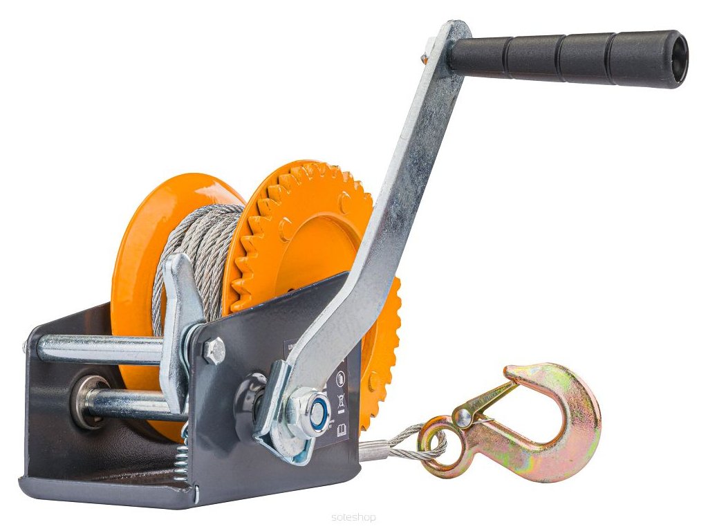 Ruční lanový naviják 545kg 10m PM-WRC-545T, Powermat PM1267 s kličkou o nosnosti až 545 kg se skvěle osvědčí v různorodých případech, umožňuje zdvihání, táhnutí a přesun různých těžkých předmětů. Možnost zdvihání a spouštění lodí; zdvihání motocyklů, čtyřkolek a dalších vozidel. Nezastupitelná pomoc v dílně.