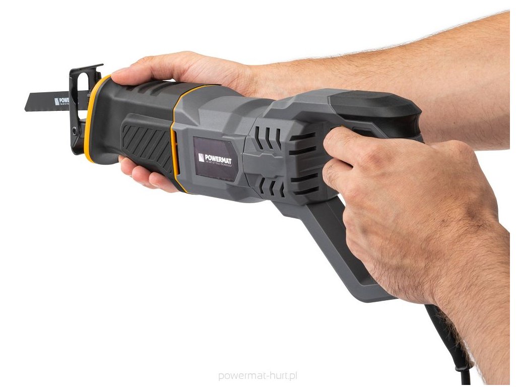 Pohodlná a lehká pila ocaska POWERMAT PM-PSZ-1800T pro řezání dřeva, oceli, hliníku a plastů.