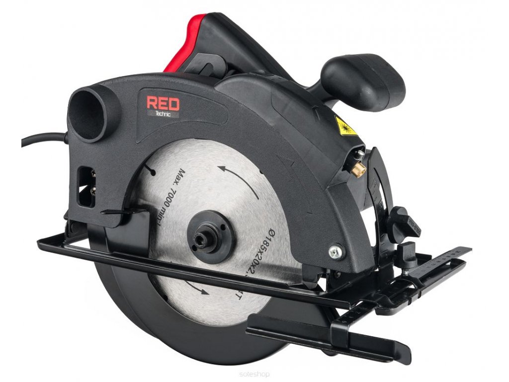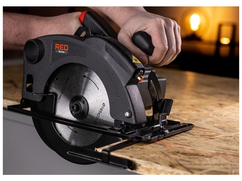 Ruční kotoučová pila 2250W, RED TECHNIC RTRPT0006 je určena pro pohodlné podélné a příčné řezání dřeva a dřevotřískových materiálů. Je to nezbytná výbava každé dílny. Je vybavena kotoučem s optimálním průměrem 185 mm. Maximální (nastavitelná) hloubka řezu je 65 mm. Kotouč lze naklonit do úhlu 45° a řezat pod tímto úhlem až do hloubky 45 mm. Použitý motor s vysokým výkonem, točivým momentem a vysokou rychlostí zajišťuje rychlé a přesné řezání. Otvor pro odsávání prachu je kompatibilní s většinou standardních domácích a průmyslových vysavačů i s pylovými sáčky. Zařízení má rukojeť pokrytou gumou, což zajišťuje jisté a pohodlné držení.