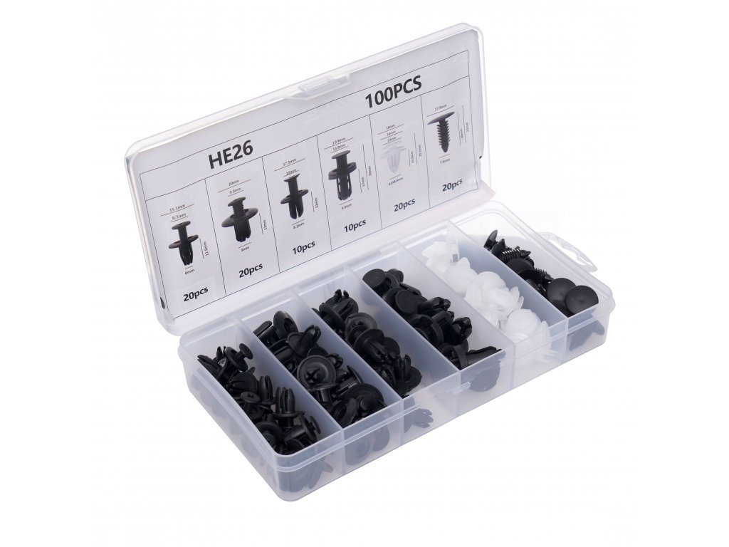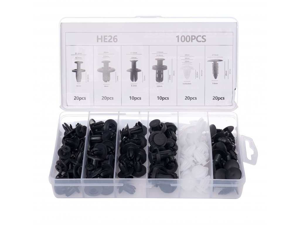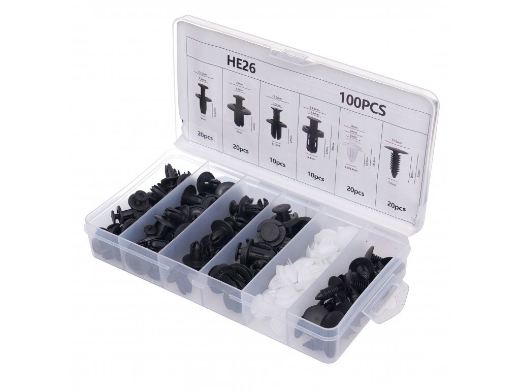 Sada obsahuje 6 nejpopulárnějších typů automobilových svorek, které se vyskytují u značek jako BMW, AUDI, LEXUS, MERCEDES, OPEL, ŠKODA, TOYOTA atd.
