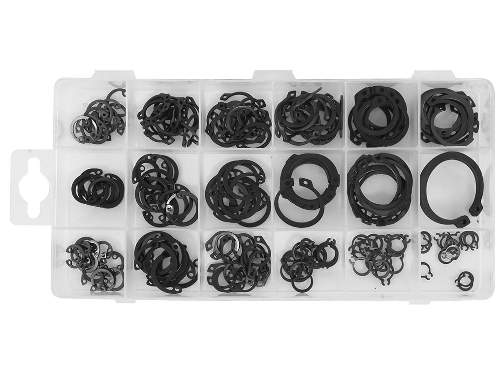 Sada obsahuje 225 kusů vnitřních a vnějších Segerových kroužků. Sada obsahuje velikosti od 6 mm do 32 mm. Vše je umístěno v praktickém plastovém boxu.