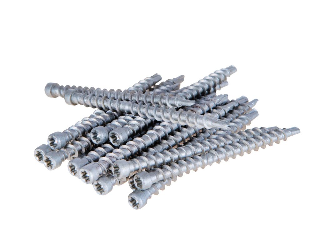 Vruty 4,5 × 60 mm s drážkou TORX T15 jsou určené pro pevnou a estetickou montáž terasových prken ve venkovních podmínkách. Délka 60 mm zajišťuje spolehlivé ukotvení prkna do nosného hranolu, takže se spoje neuvolňují ani po letech používání. Průměr 4,5 mm je optimální pro většinu terasových dřevin – poskytuje pevnost bez zbytečného rizika praskání.Technické specifikace: