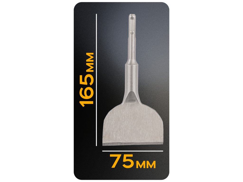 Široké zahnuté dláto SDS Plus určené pro efektivní odstraňování betonu, obkladů, malty a omítek. Díky pracovní šířce 75 mm odstraníte větší množství materiálu jedním úderem, což výrazně zrychluje práci při rekonstrukcích a demontážích. Zahnutý tvar pod úhlem 15° usnadňuje práci u podlah, stěn a v rozích, kde rovná dláta nestačí.