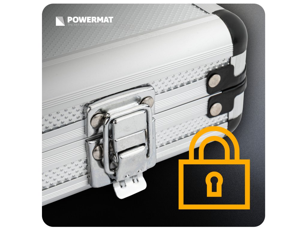 Celá sada je uložena v praktickém transportním kufru, kde má každý nástroj své místo. To zajišťuje přehledné uspořádání, bezpečné skladování a pohodlný transport. Kufr je vybaven bezpečnostním uzávěrem, který chrání obsah během přenášení.