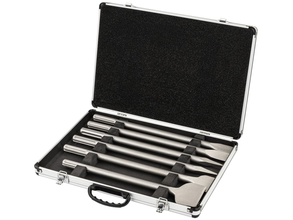 Při sekání, řezání nebo bouracích pracích je potřeba volit správný typ nástavce podle materiálu i charakteru úkonu. Tato sada dlát SDS Max kombinuje plochá dláta i špičáky, takže máte vždy po ruce vhodné nářadí pro konkrétní situaci. Různé šířky pracovních částí a pevné upínání SDS Max zajišťují stabilní a efektivní práci v betonu, cihle i kameni.