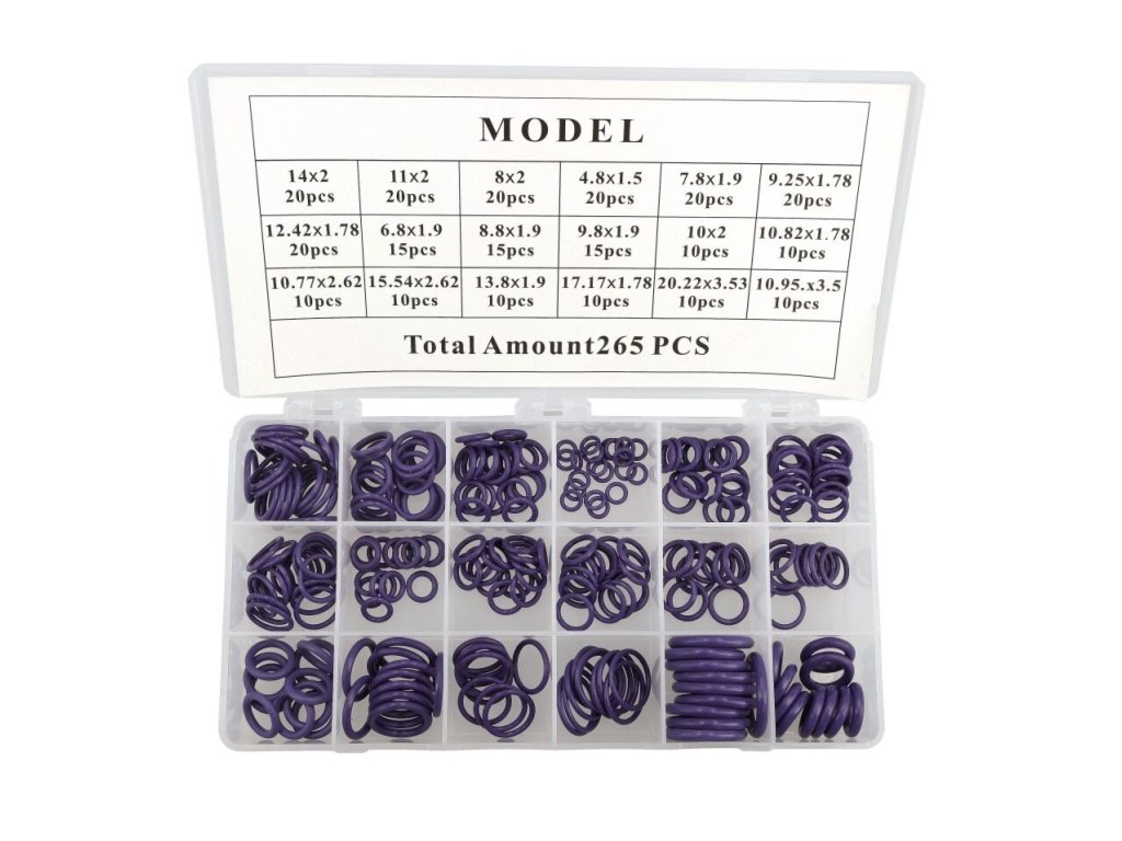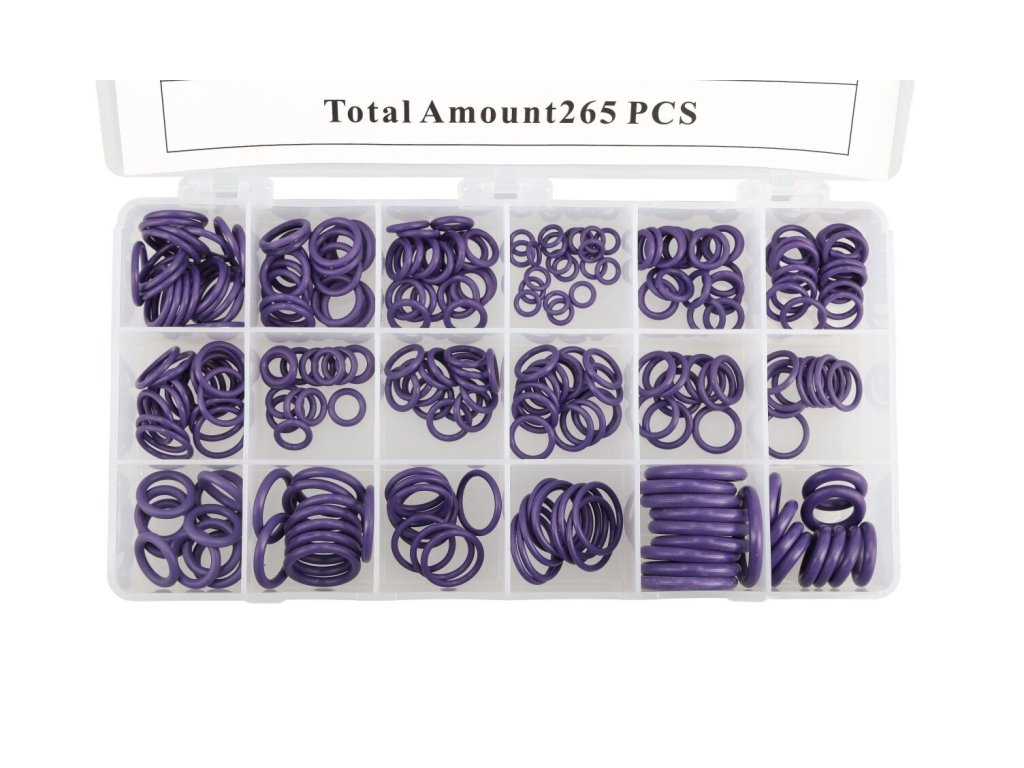 Sada 256 fialových O-kroužků pro klimatizace – 18 velikostí