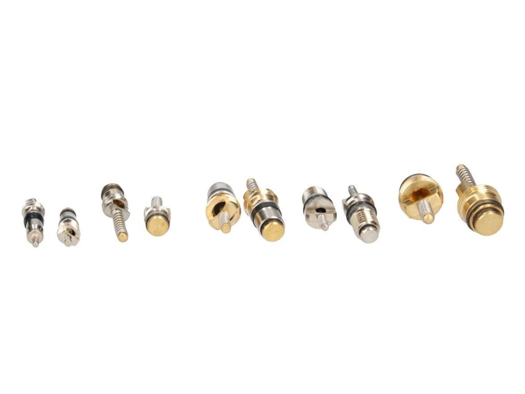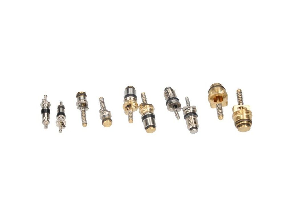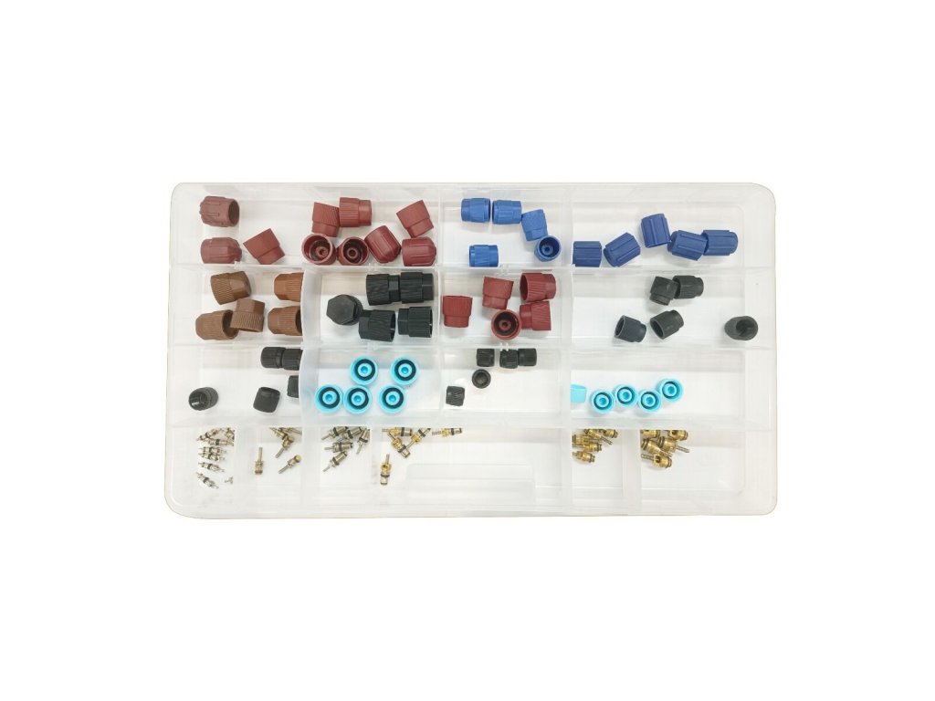 Praktická sada obsahující ventilkové vložky a ochranné čepičky (krytky) používané v automobilových klimatizačních systémech. Díky široké škále rozměrů a závitů je vhodná pro různé typy vozidel. Součástí balení je plastový organizér, který pomáhá udržovat přehled a čistotu.