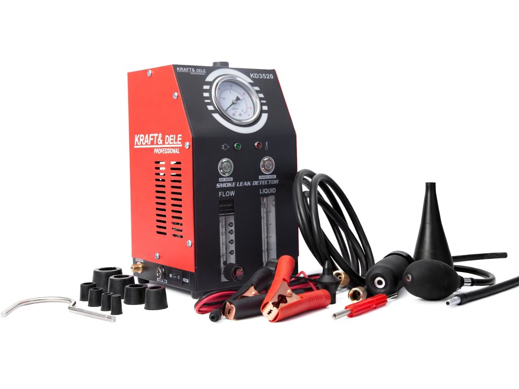 Generátor kouře Kraft&Dele KD3520 je profesionální diagnostické zařízení určené k přesné detekci netěsností v potrubních systémech vozidel a technických instalací. Umožňuje rychlé, bezpečné a efektivní odhalení úniků v systémech, jako jsou EVAP, sací potrubí, výfuk, palivová soustava, chladicí okruh nebo podtlakové vedení.
