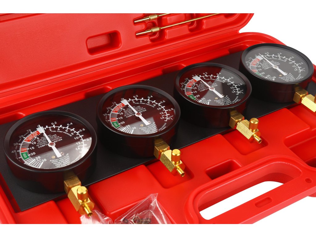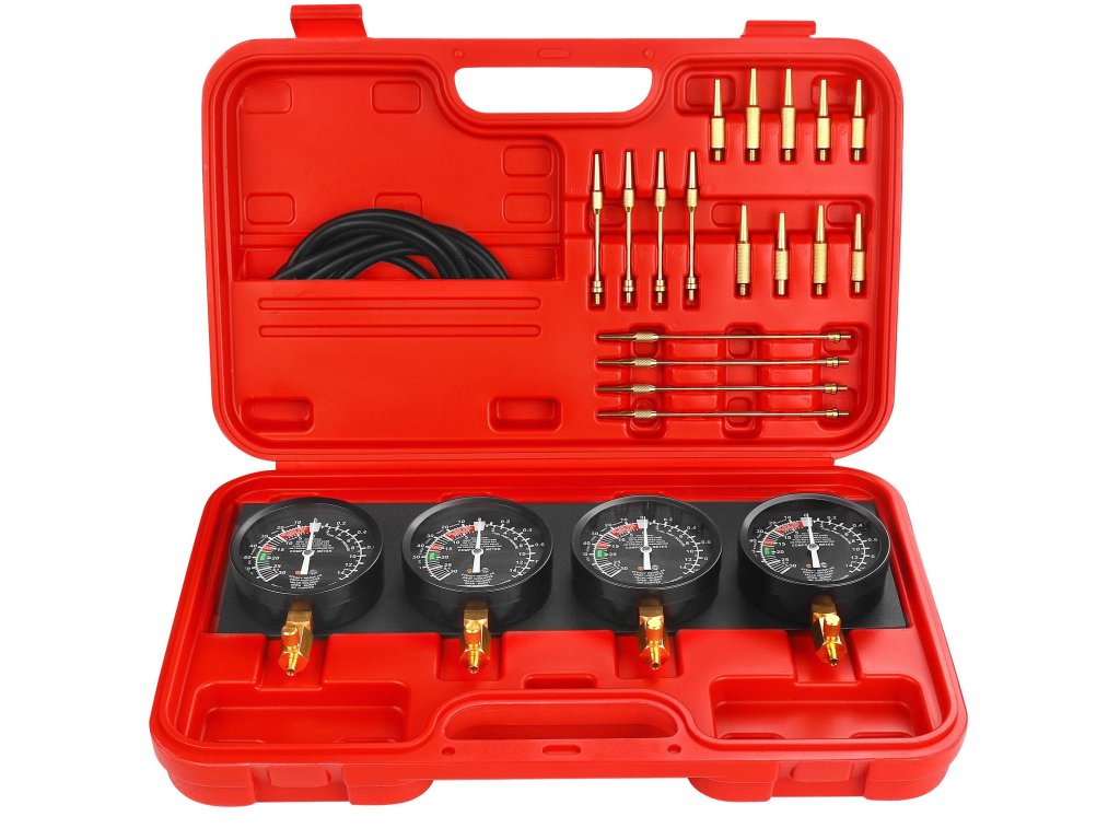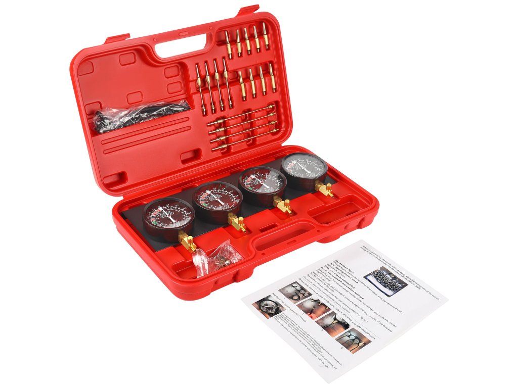 Díky čtyřem přesným manometrům, pružným hadicím a kompletnímu setu adaptérů umožňuje dokonalé vyrovnání podtlaku mezi karburátory, což zaručuje plynulý chod motoru, lepší reakci na plyn a optimální spalování paliva.
