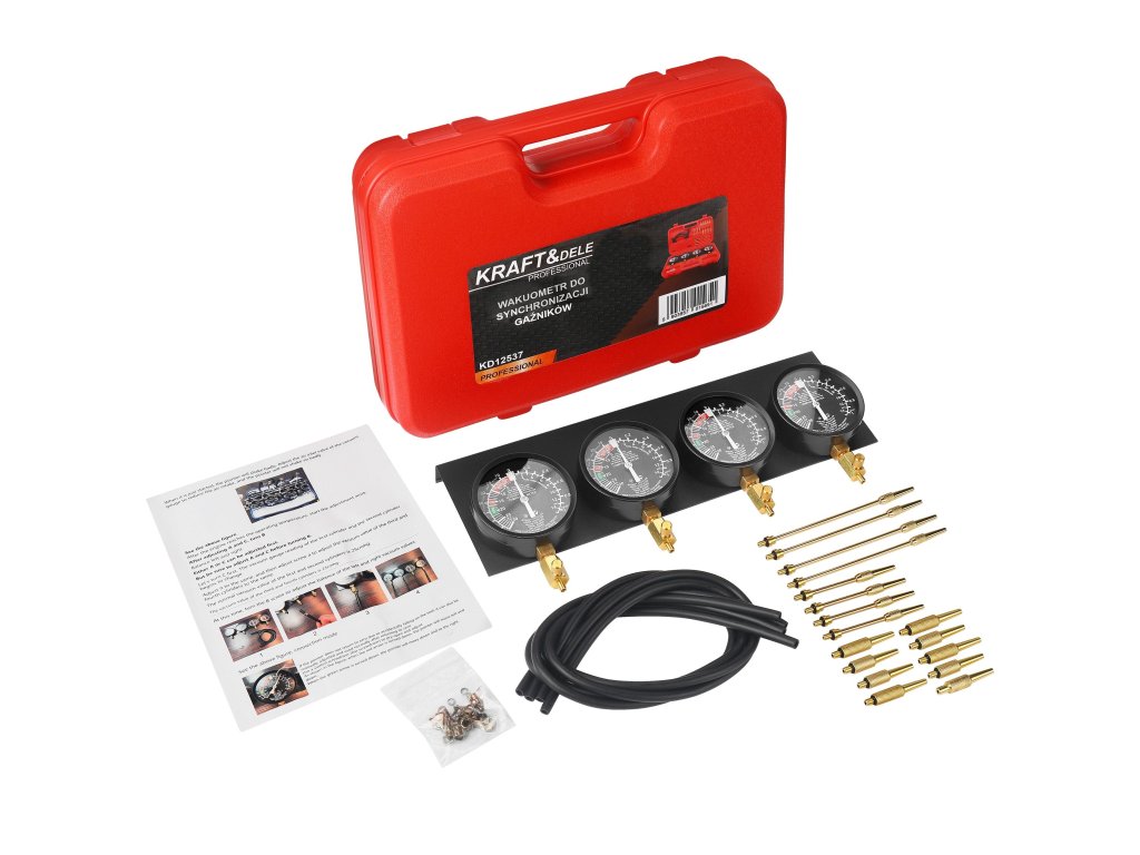 Vakuometr Kraft&Dele KD12537 je profesionální sada určená k synchronizaci karburátorů v motocyklových i automobilových motorech.