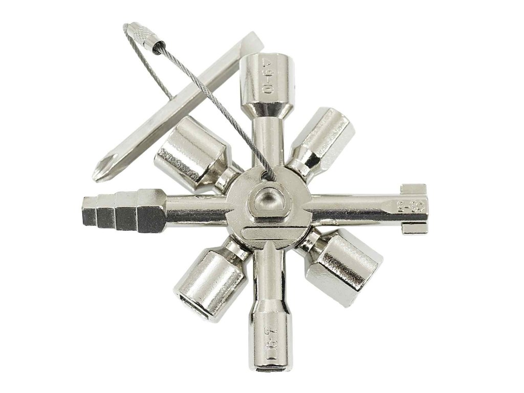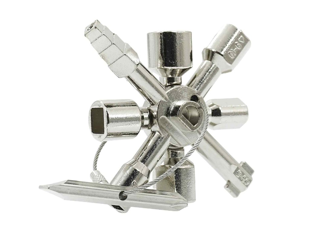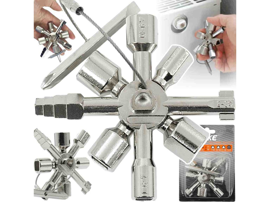 Univerzální klíč 10v1 určený pro otevírání a zamykání rozvaděčových, elektrických, plynových skříní a také radiátorů. Praktický pomocník pro servisní a montážní práce.
