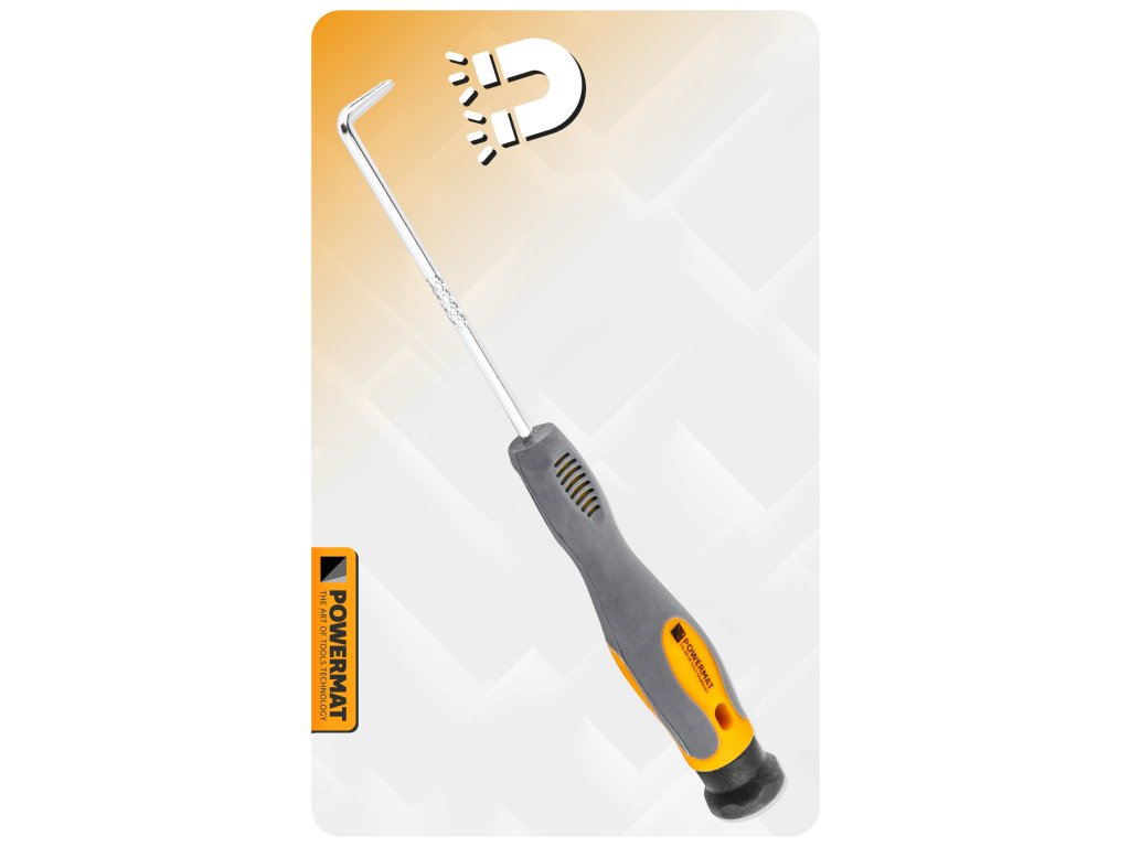 Praktická sada čtyř servisních háčků určená pro přesné práce v mechanice, autoservisu i dílně. Umožňuje bezpečné vypáčení, vyjmutí a manipulaci s malými součástmi v těžko přístupných místech.