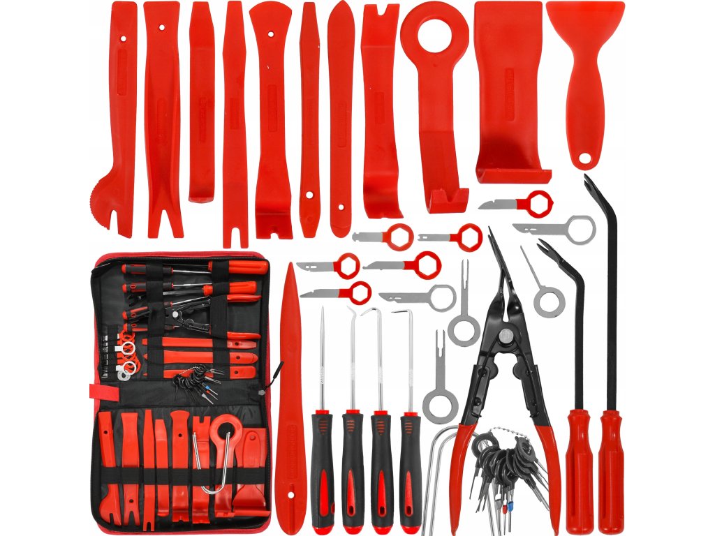 Specializované nástroje pro demontáž čalounění a lišt automobilů. Sada obsahuje 43 dílů, které umožňují rychlou demontáž čalounění z jakéhokoli interiéru vozidla. Prvky sady jsou vyrobeny z tvrzeného nylonu a mají speciální profily, které umožňují použití páky při demontáži čalounických sponek. Velkou výhodou této sady je, že nezpůsobuje škrábance na čalounění ani na lakovaných částech. Sada je doporučena pro použití v autoservisech, čalounických dílnách, karosářských a lakýrnických provozech.