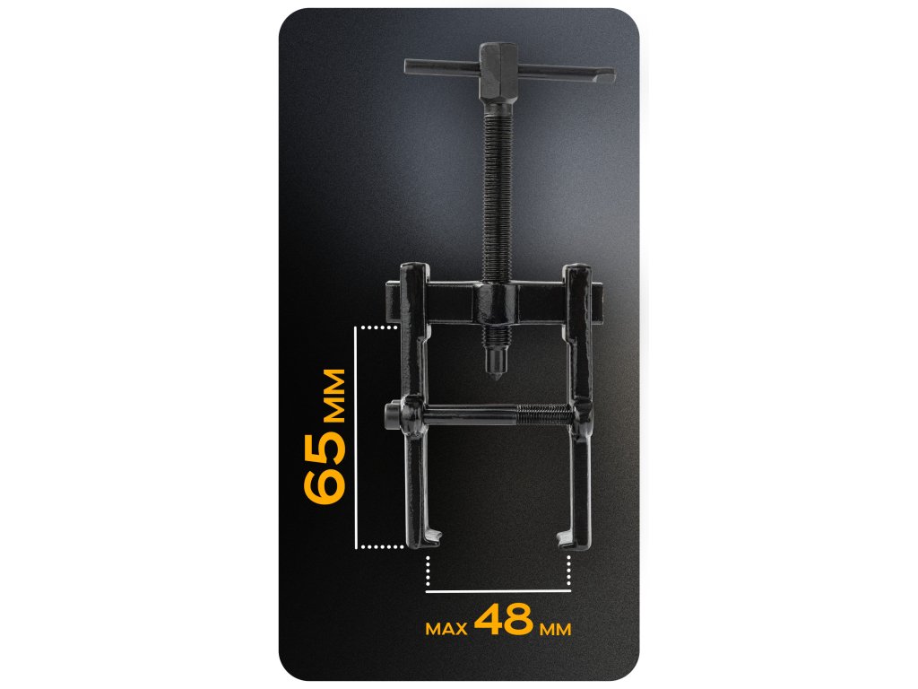 Díky rozsahu 28–48 mm s aretací (až 52 mm bez aretace) a maximální pracovní výšce 65 mm je vhodný pro široké spektrum servisních prací v autoservisu i domácí dílně.