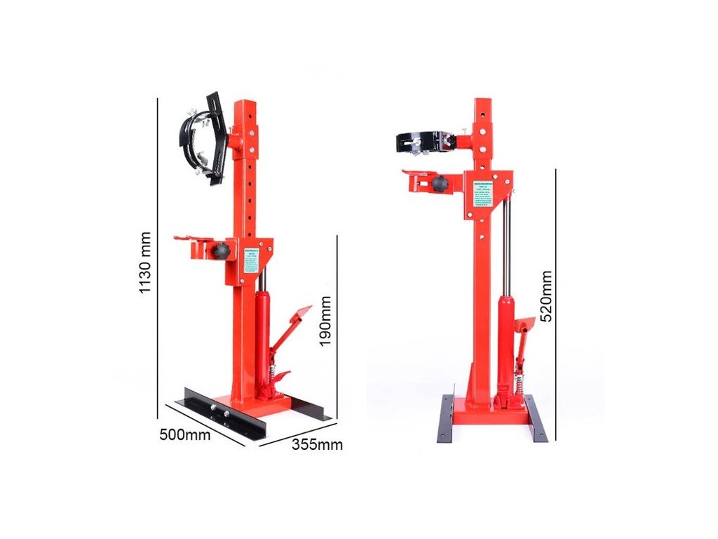 Profesionální hydraulický stahovák na pružiny Mcpherson s nosností 1t je vybaven dvěma pedály pro ovládání. Zařízení nabízí 7-mi stupňové nastavení a je velmi robustně vyrobené, což dokládá jeho velká hmotnost (29 kg). Umožňuje snadné stlačení namontované pružiny pro montáž, nebo demontáž McPhersonova sloupku s možností upevnění k podlaze.