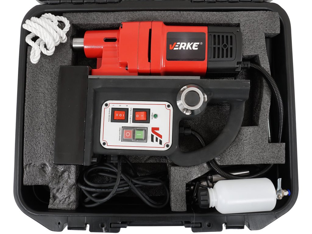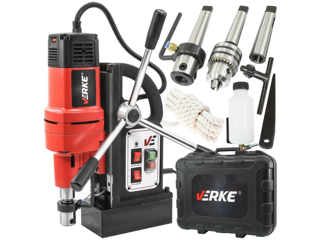 Magnetická stojanová vrtačka, Verke V08251 je elektrická vrtačka určená k vrtání pomocí vrtáků a nástrojů v materiálech s povrchem, který lze zmagnetizovat, což umožňuje přichycení ocelového obrobku pomocí magnetického držáku v těle zařízení. To zvyšuje přesnost obrábění ve srovnání s ruční elektrickou vrtačkou. Magnetickou vrtačku lze používat k vrtání horizontálně, vertikálně shora a vertikálně zdola.
