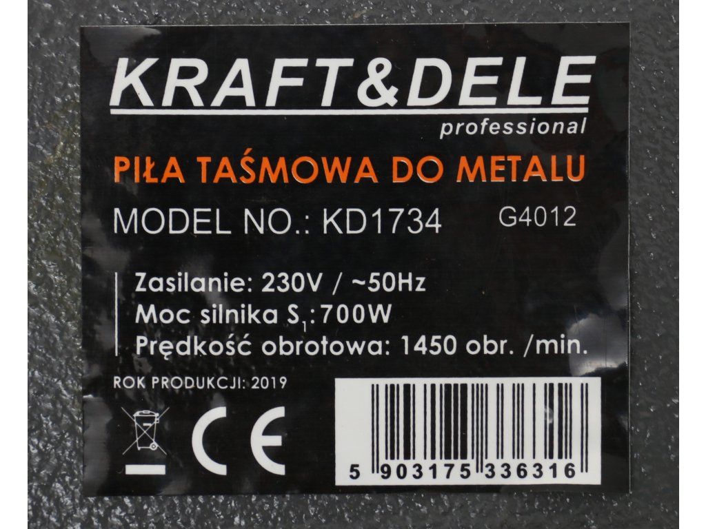 Elektrická pásová pila na kov 700W, Kraft&Dele KD1734