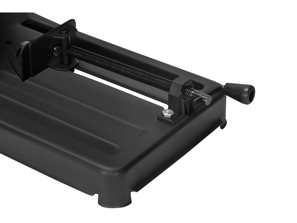 Řezačka je vybavena pevně upínacím svěrákem s možností nastavení až do 45°, který umožňuje stabilní fixaci materiálu a precizní šikmé řezy – ideální řešení pro konstrukční a montážní práce.
