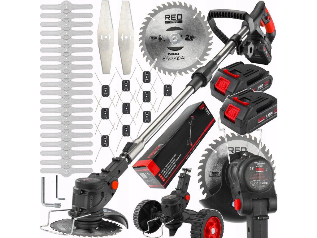 Akumulátorový vyžínač, sekačka 21V 1000W + mega výbava, Red Technic RTPKA0104