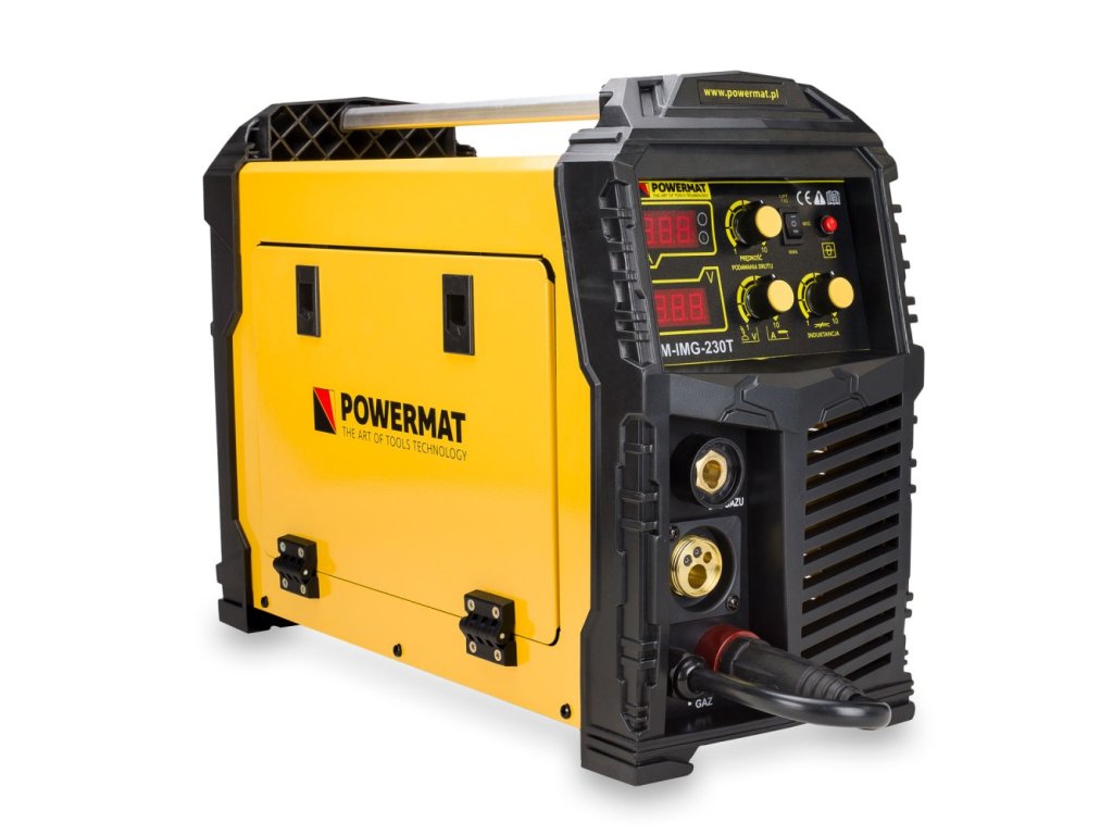 Kombi svářečka Powermat PM-IMG-230T je svářečka se širokou škálou použití. Svářečka umožňuje svářecí práce metodou svařovacího drátu tavitelný v ochranné atmosféře ( MIG / MAG ) nebo FCAW drátu trubičkový (po změně polarity) a také svařování elektrodou (MMA) a metodou Lift TIG (vyžaduje k nákupu hořák pro svařování TIG Lift)