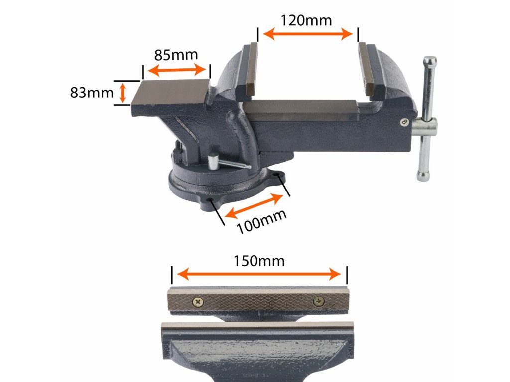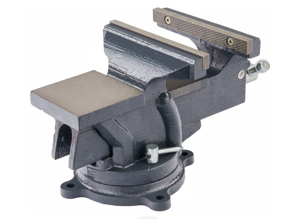 Svěrák otočný s kovadlinou 150 mm 360 PM-IS-150T, Powermat PM1237 vyrobený z železa a vybavený kovadlinou z kalené oceli, je vynikajícím nástrojem pro každého kutila a zámečníka.