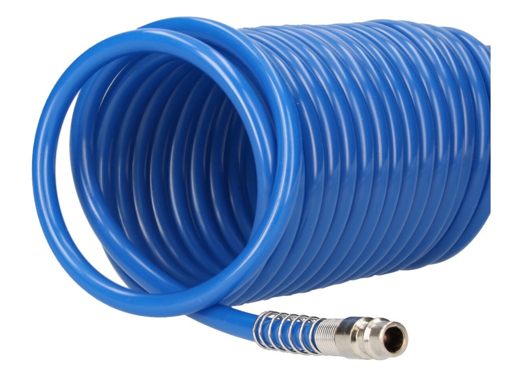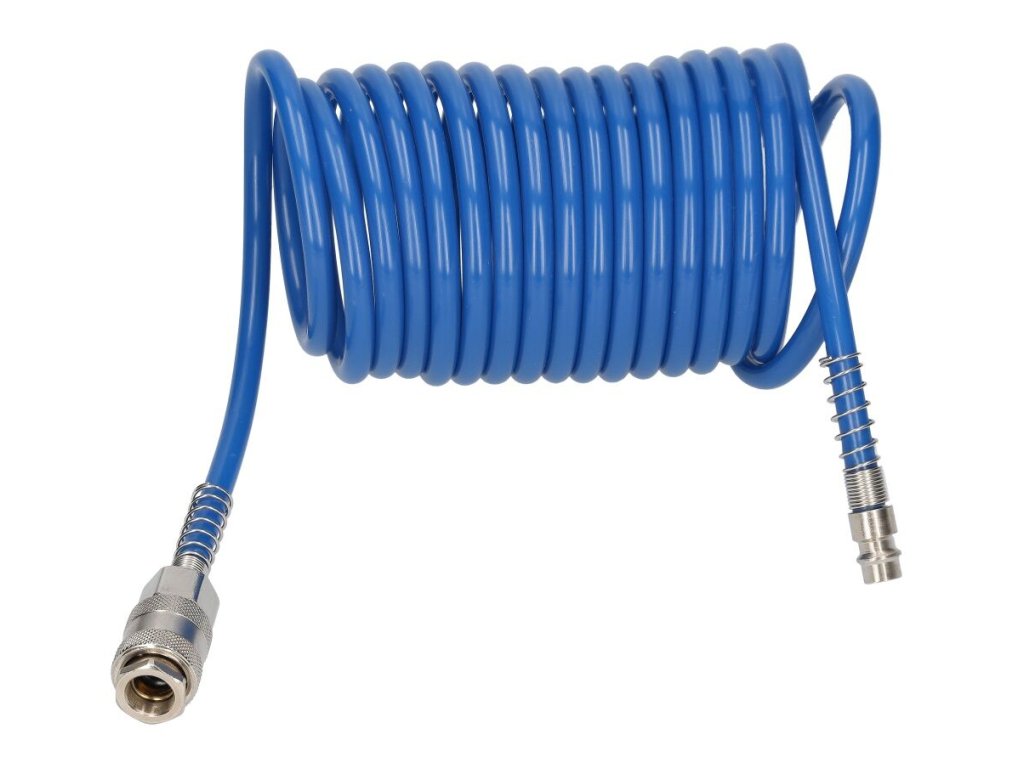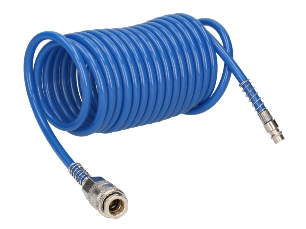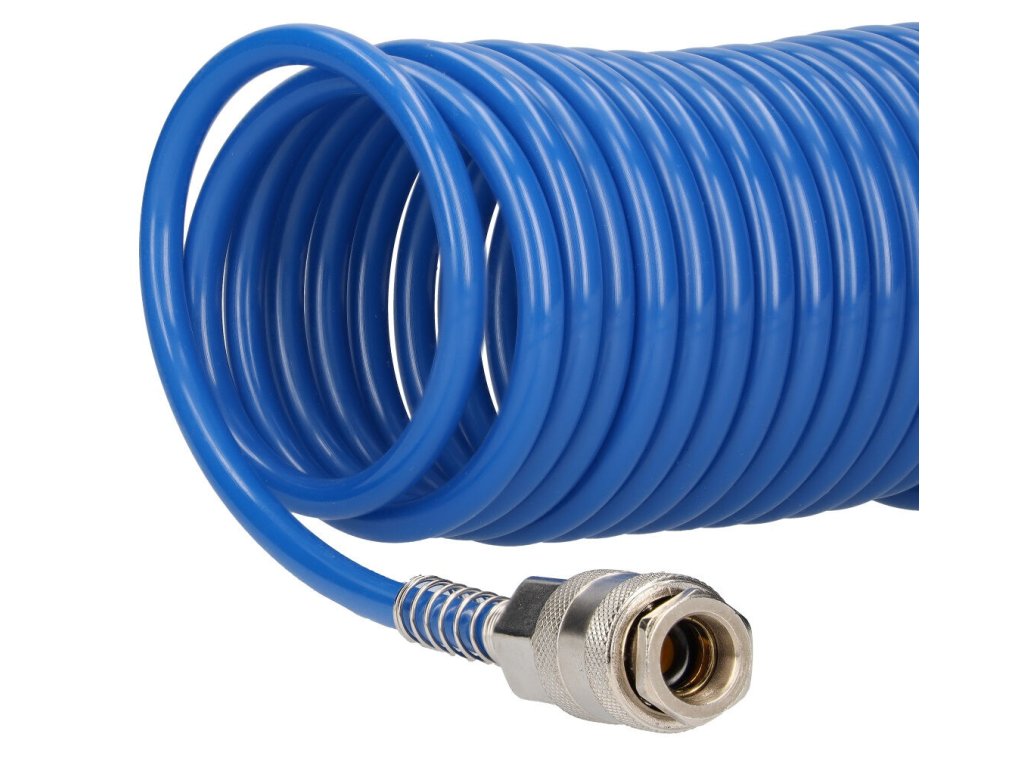 Spirálová pneumatická hadice 5 m vyrobená z kvalitního polyuretanu je ideálním řešením pro připojení pneumatických nástrojů a zařízení. Díky své lehkosti, vysoké pružnosti a odolnosti proti zlomení či oděru se výborně hodí pro použití v dílnách, průmyslových provozech i domácích podmínkách.