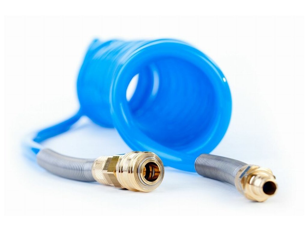 Pneumatická hadice RQS je vyrobena z odolného polyuretanu, má vnitřní průměr 8 mm a vnější 12 mm. Je opatřena rychlospojkou a vsuvkou typu Rectus 26 KA se zesílenou pružinou proti zalomení. Díky své spirálové konstrukci a kvalitnímu provedení je ideální volbou pro profesionální použití v dílnách, zejména u zařízení pracujících s tlakem 6–10 barů.