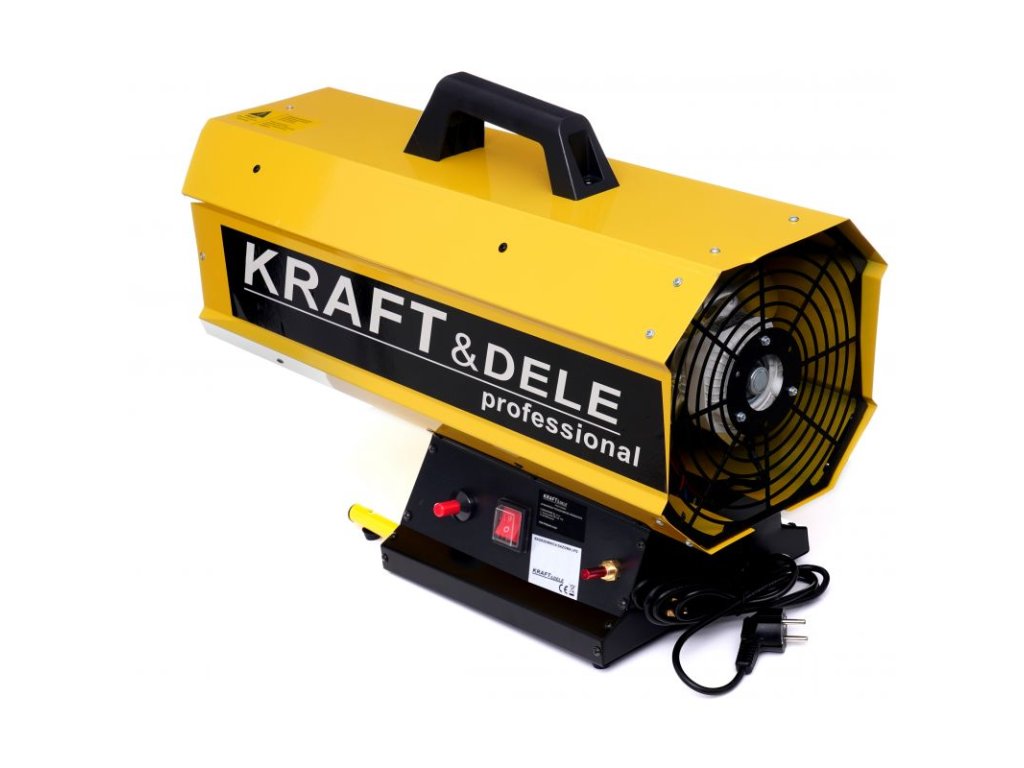 Topný ventilátor Kraft&Dele model KD11736 s výkonem 60 KW na propan-butanový plyn (LPG).