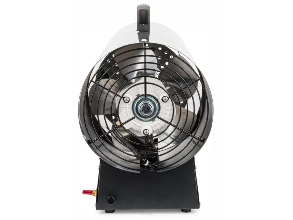 Vestavěný 5-ti listý vysoce výkonný ventilátor zajistí průtok vzduchu až 850 m³/h. Vysoce kvalitní motor, vestavěné piezoelektrické zapalování a ochrana proti přehřátí, která přeruší přívod plynu, zajišťují efektivní a bezpečný provoz. Ohřívač lze připojit k 5 nebo 11 kg láhvi na propan/butan. Plynový ohřívač je ideální pro vytápění dílen, hal, skladů atd.
