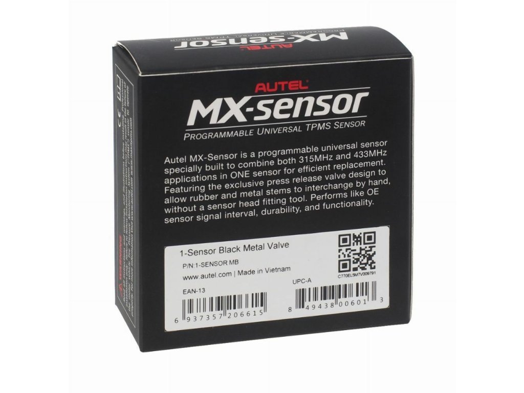 AUTEL 1-Sensor je univerzální a vícekrát programovatelný senzor TPMS s duální frekvencí 433 MHz a 315 MHz, který nahrazuje až 98 % originálních OE senzorů dostupných na trhu. Tento model je vybaven černým ventilem, což zajišťuje elegantní vzhled, vysokou odolnost a snadnou montáž.