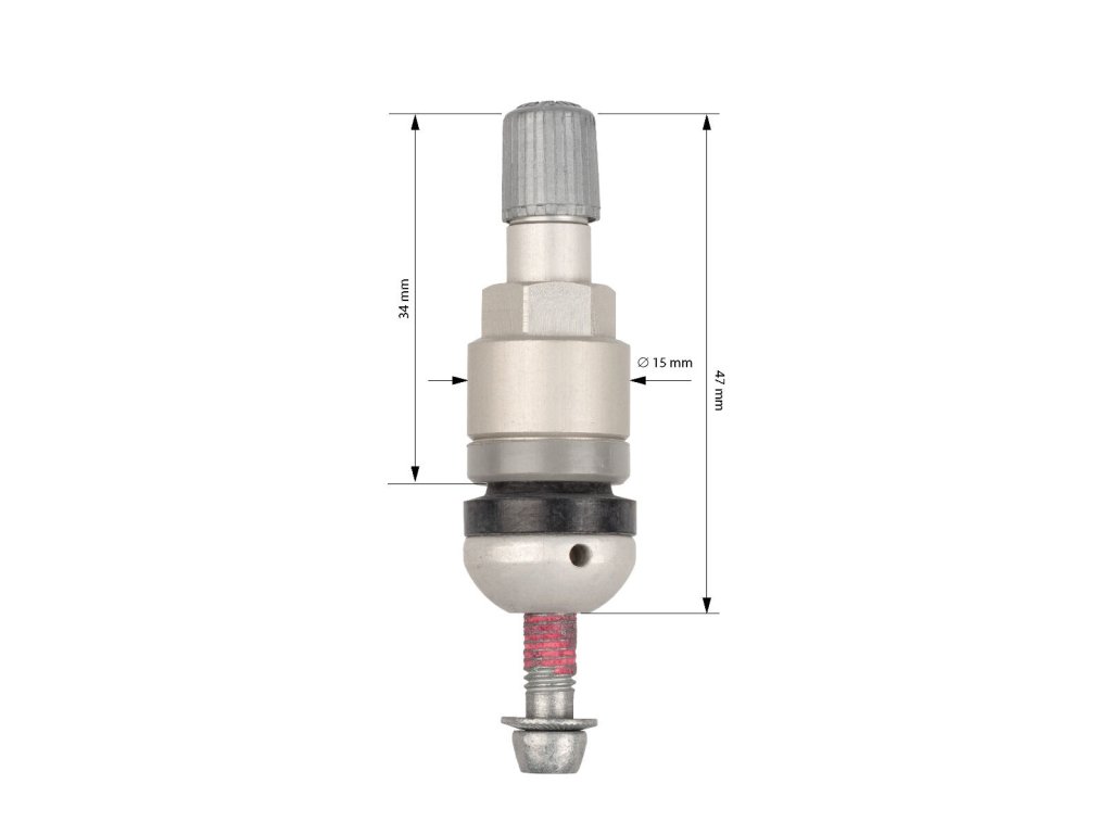 Stříbrný ventil určený pro univerzální čidla TPMS Alligator Sens.it s čísly 562-3941 a 562-3946. Vyroben z kvalitního hliníku s dodatečnou antikorozní ochranou, která zajišťuje dlouhou životnost a spolehlivou funkci v náročných podmínkách provozu.