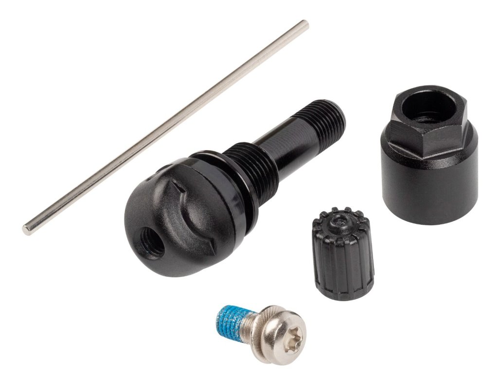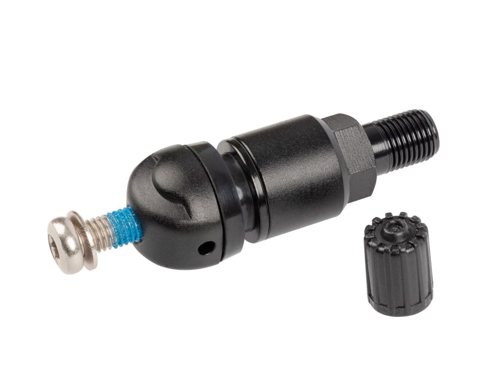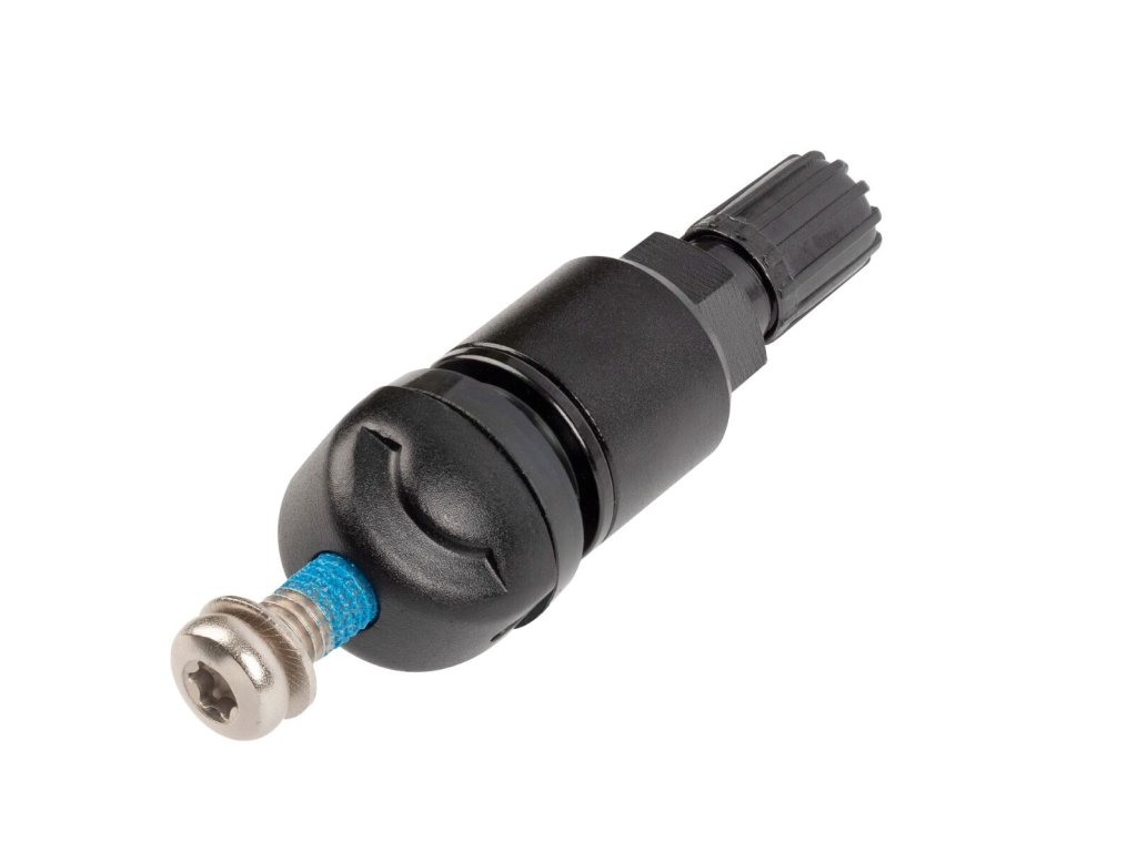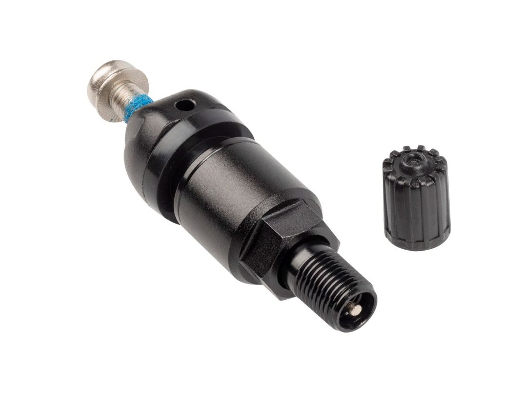 Při případné demontáži ventilu je nutné šroubek vyměnit, protože ztrácí své původní vlastnosti upevnění. Ventil je vyroben z anodizovaného hliníku v černé barvě, což je ideální řešení pro stále oblíbenější černá hliníková kola.