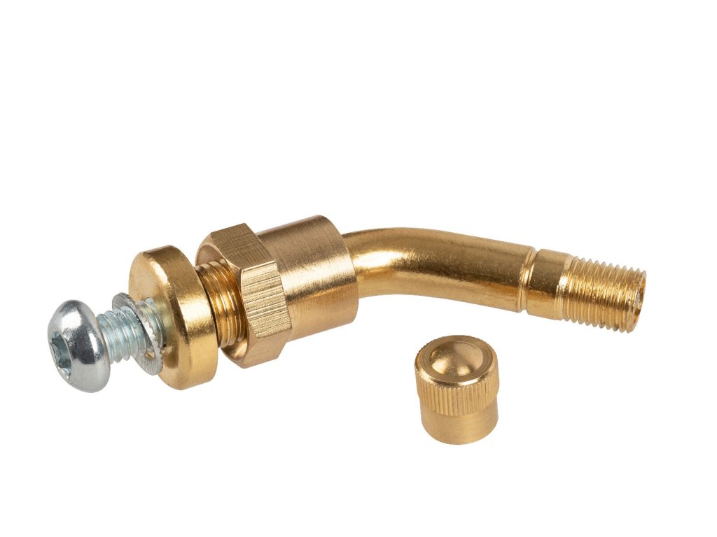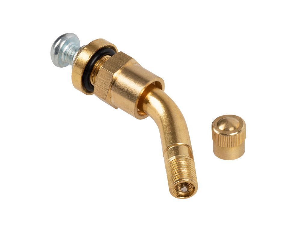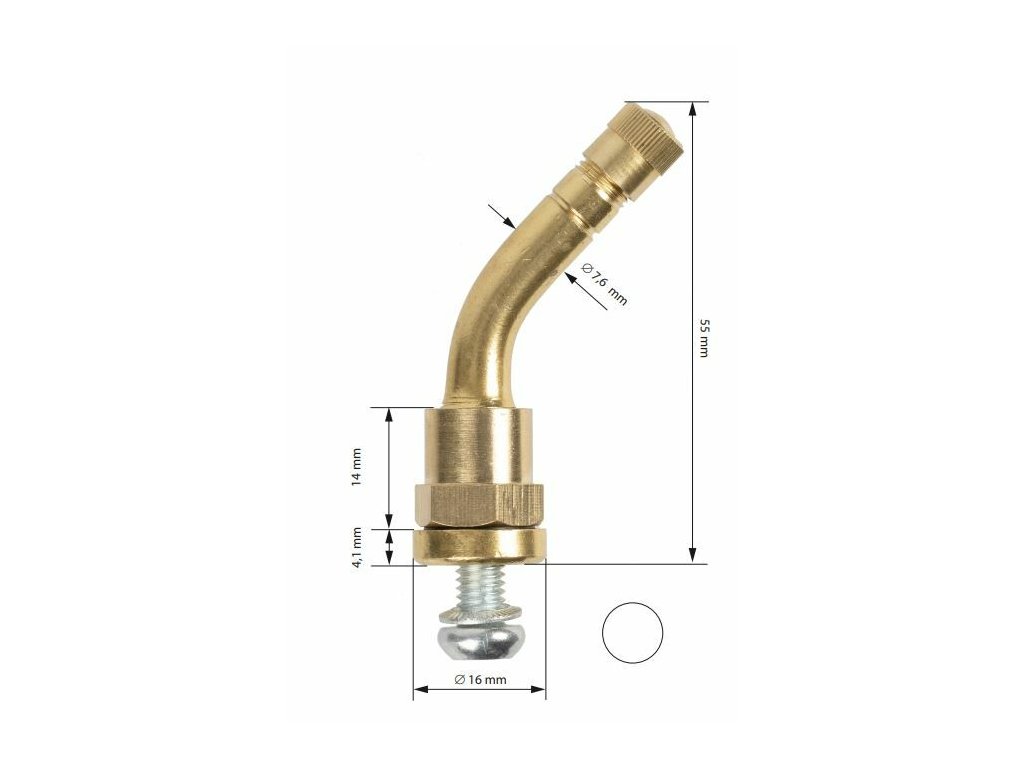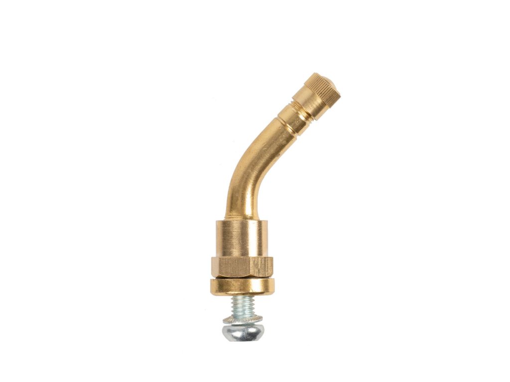 Niklovaný kovový ventil TPMS určený pro kola nákladních vozidel a autobusů vybavených senzorem kontroly tlaku TPMS. Ventil je proveden v úhlu 45° a je navržen pro spolehlivou montáž do ráfků s odpovídajícím otvorem.